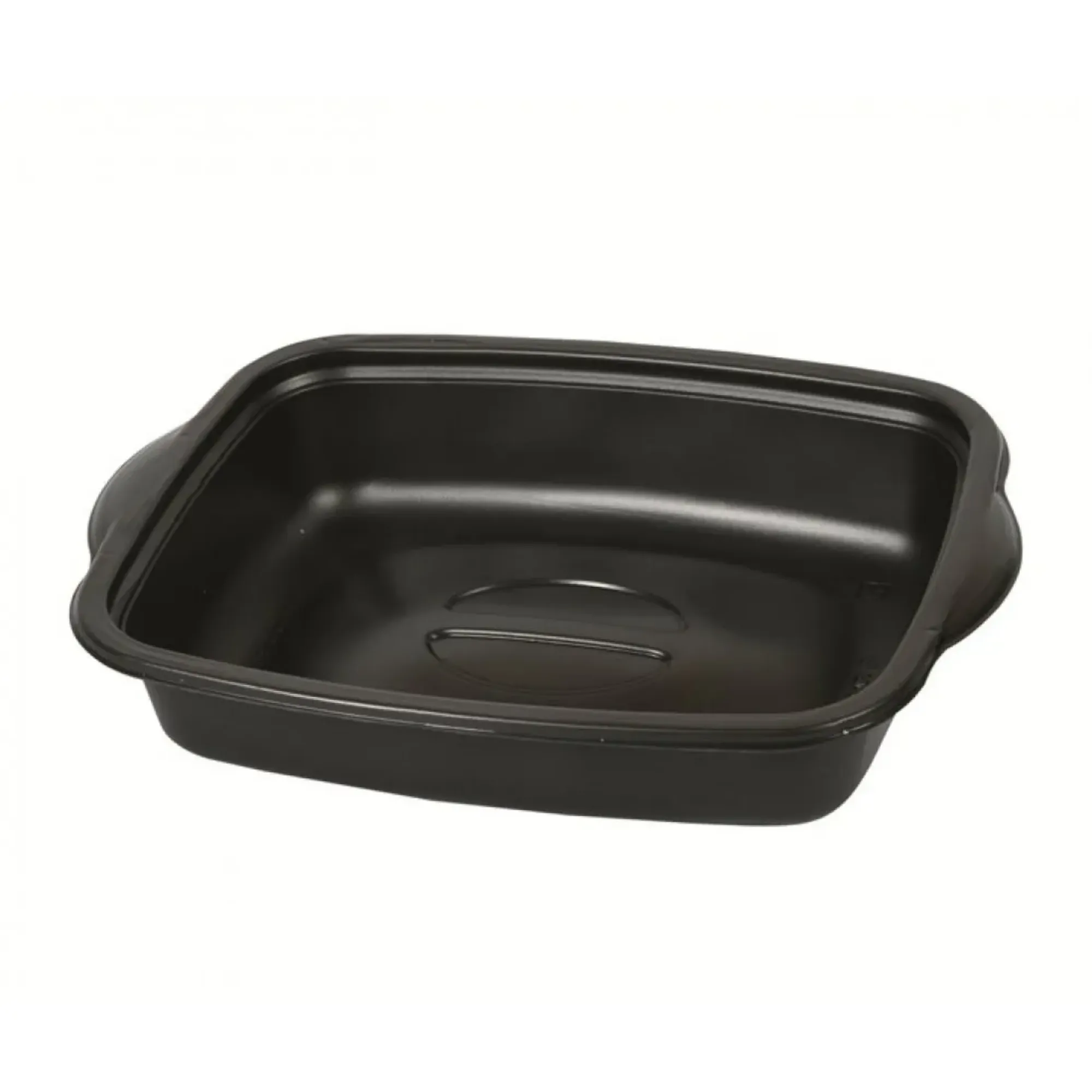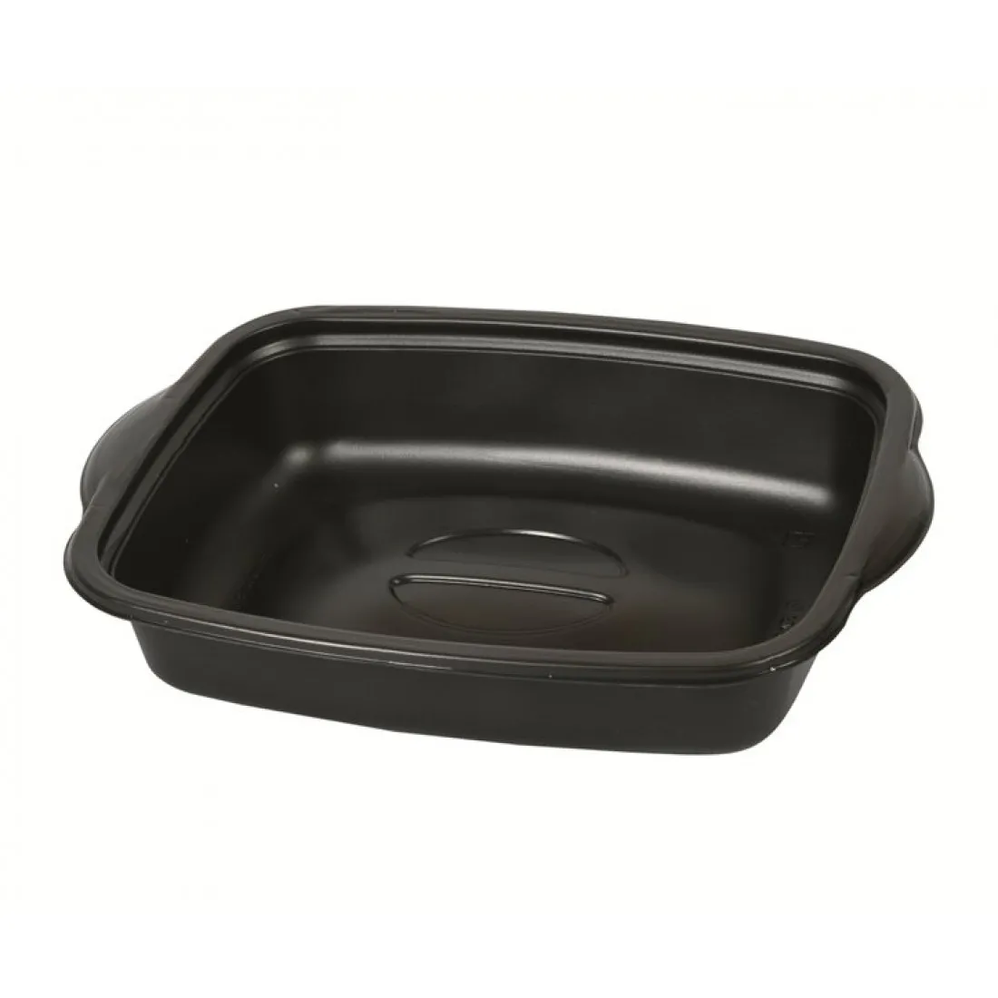 This 1000cc Black Container is a quality packaging solution for carry-out meals. Premium materials maintain stability and structure under a range of temperatures. Tight-fitting lids (05204162) protect against spills. Recyclable and sustainably designed to minimize plastic use. Suitable for microwave use.