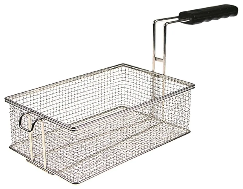 The 1/2 Size Fryer Basket, model number 2014725, is designed with dimensions of 110 x 280 x 100 mm. This fryer basket is an essential kitchen tool, ideal for efficiently frying a variety of foods. Its size makes it suitable for use in smaller fryers or for preparing smaller batches of fried items. The basket's construction ensures durability and longevity, making it a reliable choice for both commercial and home kitchens.