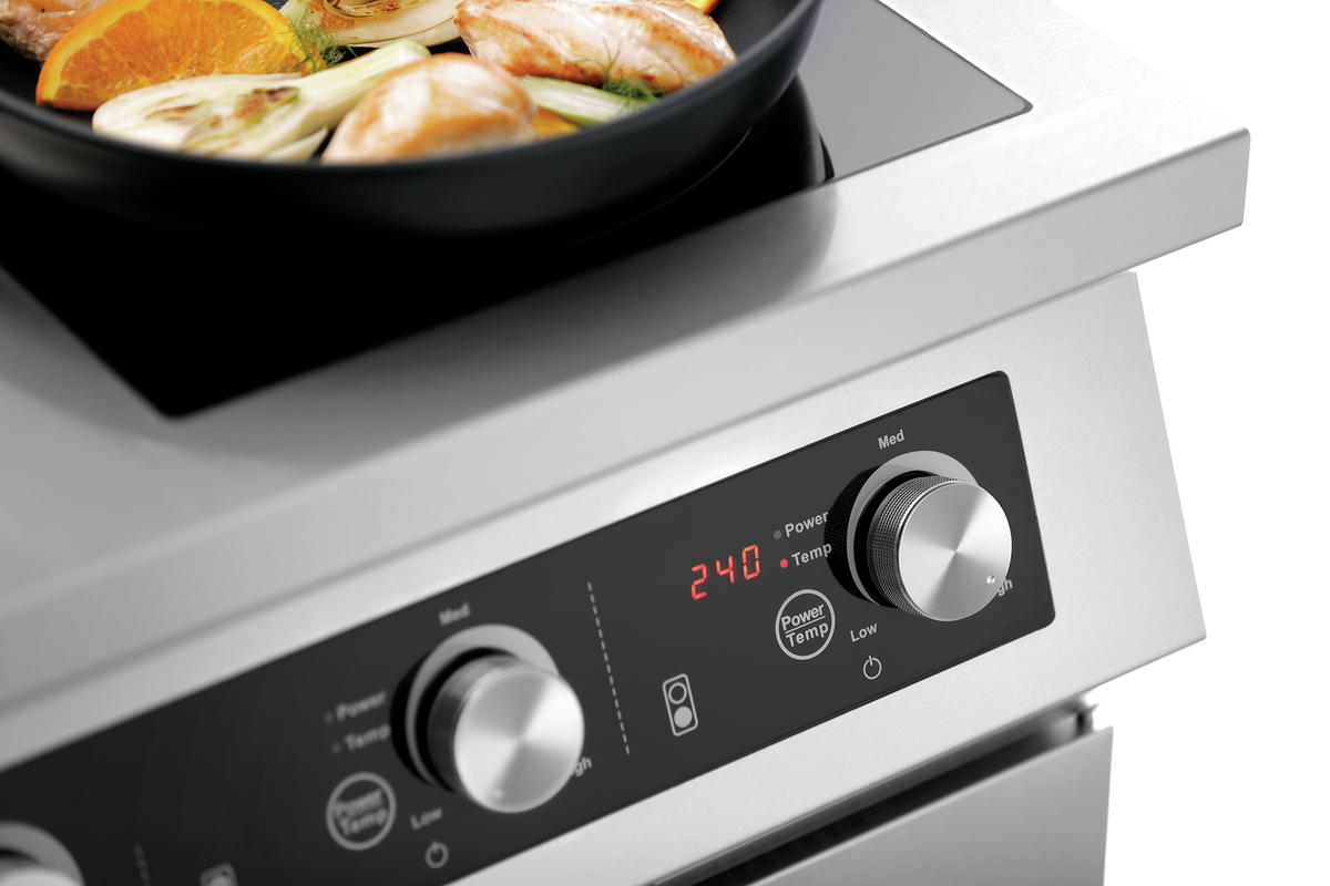 The 4-hob induction stove GU is a powerful and reliable partner in any kitchen. The split glass surface provides generous space for cooking, and the 17 kW of power can be controlled via power stages or temperature.