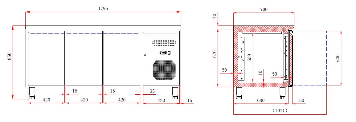 - Interior Dimensions (WxDxH): 1234x580x564 mm