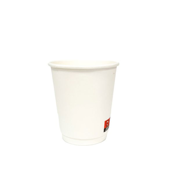This case contains 20 boxes of 25 8oz White Matt Double Wall PE Cups. These cups are made from high-quality paper with a double wall design for enhanced insulation. They feature a white matte finish and the EU logo, indicating compliance with European regulations. These cups are suitable for serving hot beverages and are ideal for coffee shops, cafes, or any foodservice establishment that values a sleek design and meets EU packaging requirements. coffee cup, disposable coffee cup, tea cup, hot chocolate cup, late, cappuccino, frappe, soft ice-cream, ice coffee