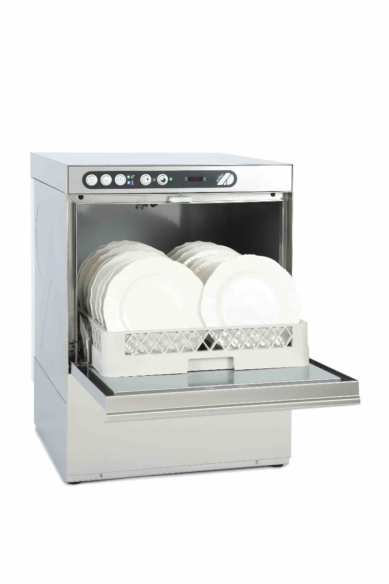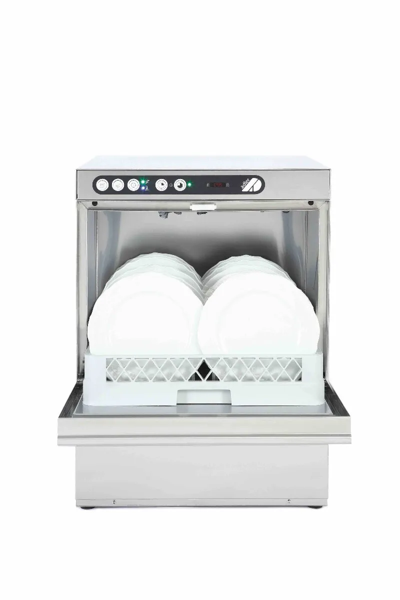 The Adler AD50 Gravity Drain Dishwasher is a one-of-a-kind professional dishwasher, which comes with two included baskets that have a basket size of W500 x H500mm. This dishwasher also features a chemical pump, which ensures that any chemical bottles used for dishwashers are drawn out precisely when in operation.