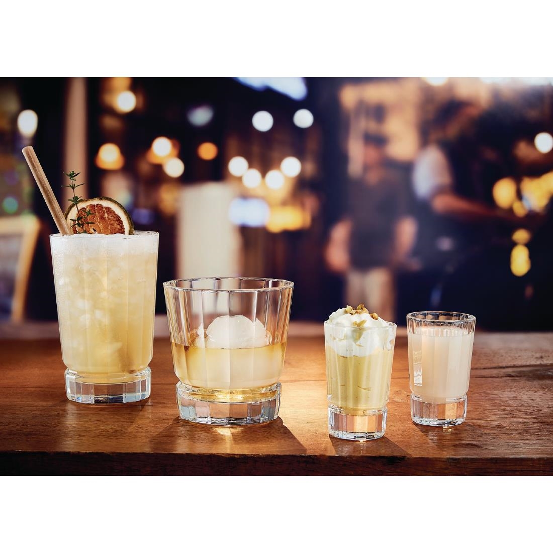 Inspired by Art Deco patterns and motifs, these Arcoroc Bourbon Street shot glasses boast clean, straight-cut lines and sparkling clarity. The heavy and thick bottom gives the glasses a strong character and ensures exceptional stability. With a 60ml capacity, they're perfect for serving shots of various spirits such as tequila, vodka and rum. Plus, these glasses are dishwasher safe for effortless cleaning.