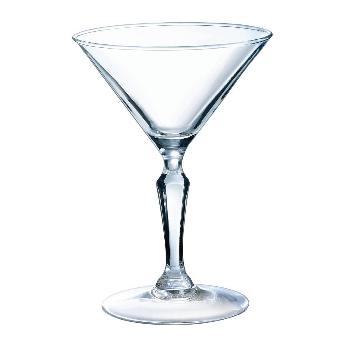 Aficionados of old-fashioned liqueurs and infusions with secret recipes will find these Arcoroc Monti stemmed cocktail/martini glasses perfect for showcasing their creations. The transparent bowl enhances the visual appeal of any beverage, while the geometric stem adds a touch of elegance. Inspired by the spirit of the Roaring Twenties, these Monti glasses bring a vintage charm to your venue and look stunning both with and without liquid. Plus, they're professional dishwasher safe for easy cleaning.