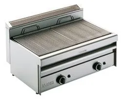 The Arris GV855 countertop radiant gas chargrill is compact enough to sit on a narrow worktop. Despite its size, it is equipped with a water humidifier system that keeps products moist while cooking. This feature also simplifies cleaning as the fat drips into the tray.