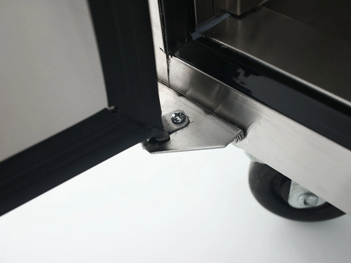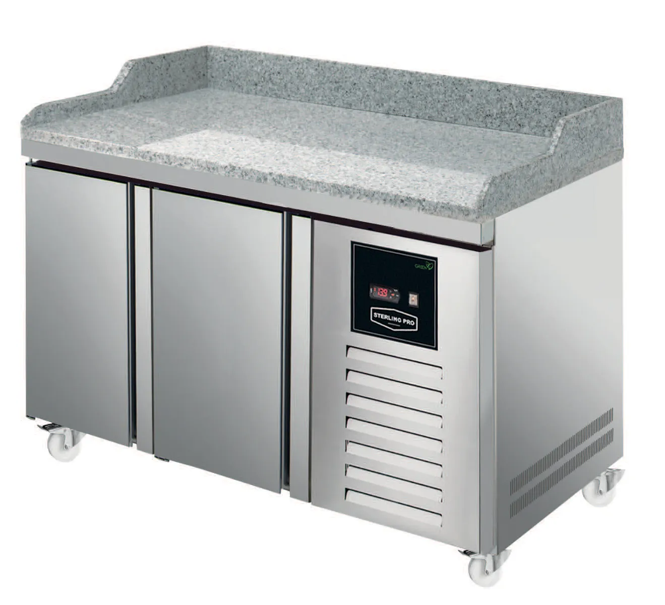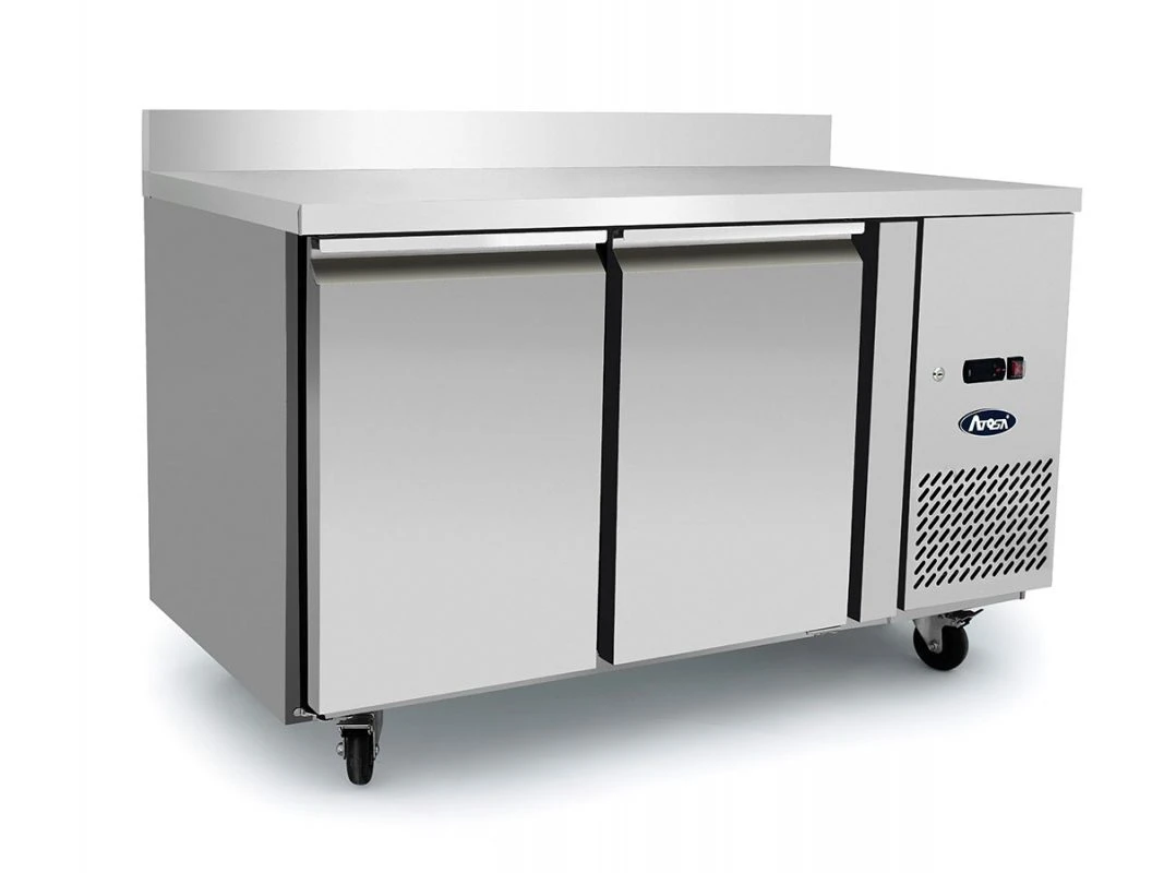 The Atosa EPF3462HDSB Two Door Table Freezer with Splash Back is constructed with a high-grade stainless steel exterior and interior. It is equipped with a heavy-duty Embraco compressor.