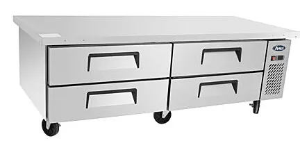 The Atosa MGF Series Refrigerated Drawer Chef Base is constructed with high-grade stainless steel for both the interior and exterior. It is equipped with a heavy-duty compressor that uses an environmentally friendly R600a refrigerant.