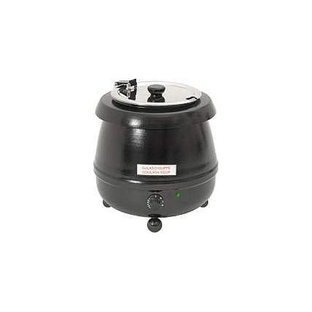 The black exterior soup kettle with a stainless interior is a smart solution for holding hot liquids. It is ideal for front-of-house displays, whether for self-serve or assisted service. This kettle is great for commercial use in both small and large catering establishments.