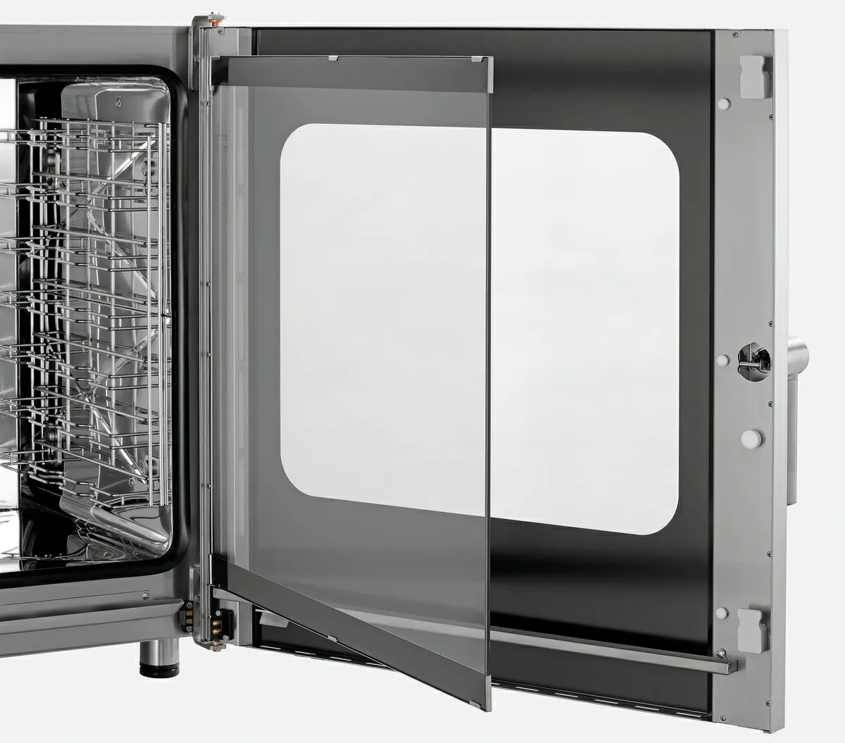 - Properties: Rounded baking chamber, Bearing rails can be detached, Double-winged door pane, LED lighting in door