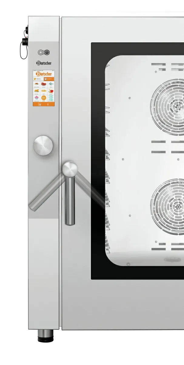 - Properties: Rounded baking chamber, Bearing rails can be detached, Double-winged door pane, LED lighting in door, Socket (500 W) for connection of an extractor hood, Faster heating and reheating times, Up to 28% reduction in cooking times, Ideal for cooking spaces used to full capacity, Better air circulation thanks to additional motors