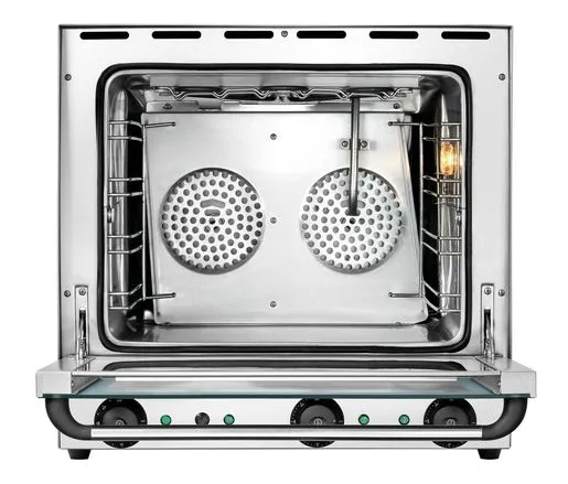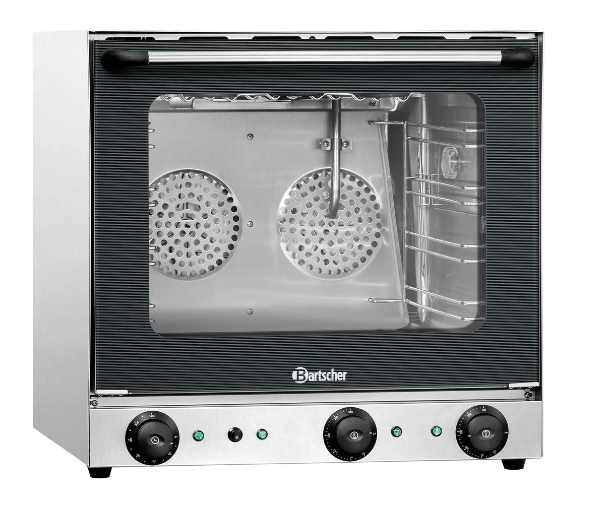 - Properties: Double-winged door pane, Rounded baking chamber, Bearing rails can be detached, Signal tone after expiry of the time