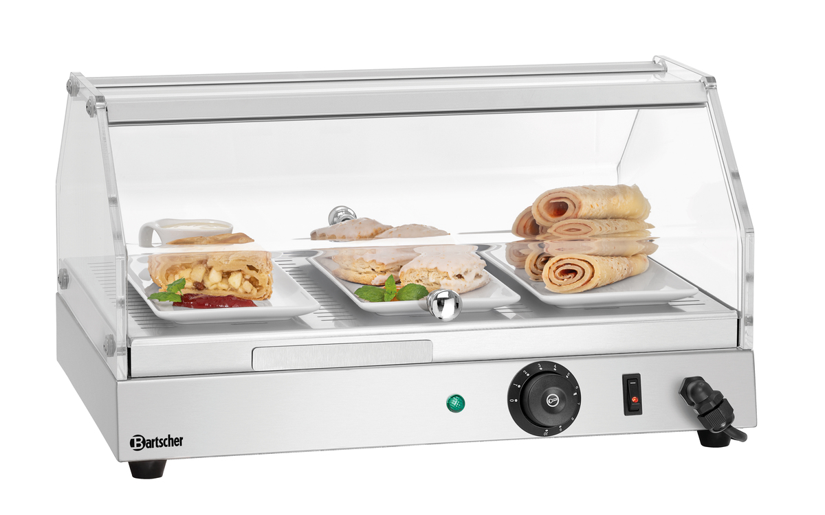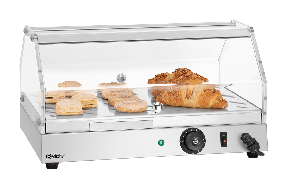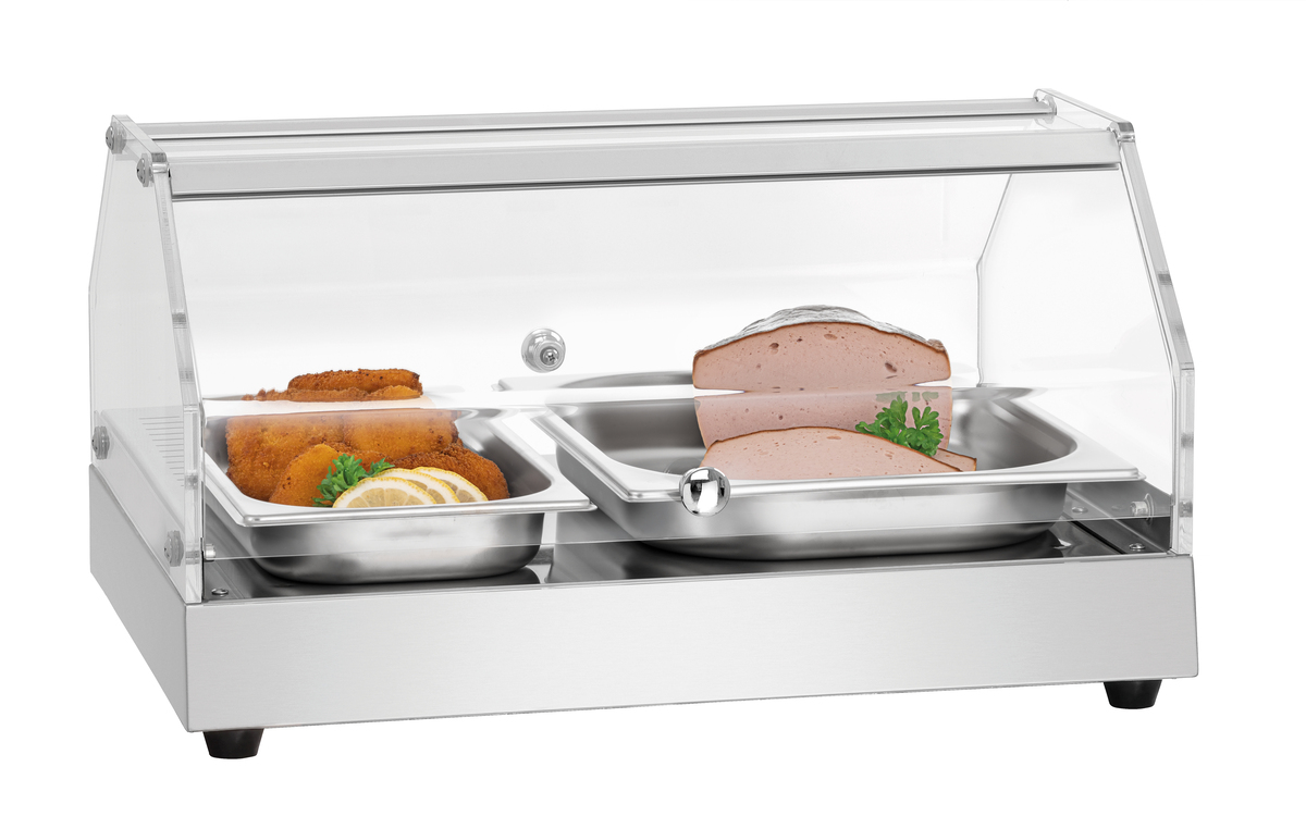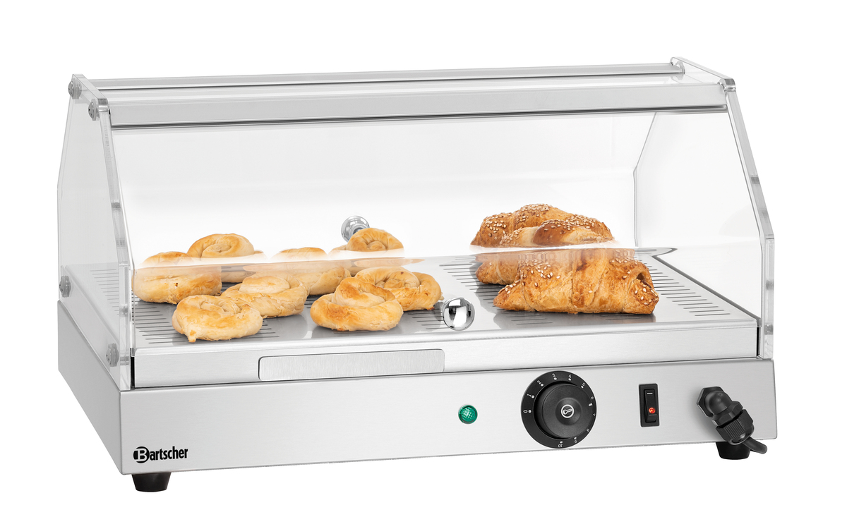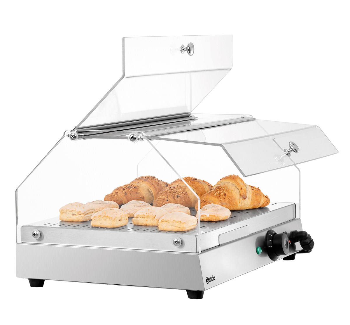 Warming display case with one level for perfectly presented culinary delights. Thanks to the warm, moist air, the food is still warm and juicy even after several hours of storage - just like fresh from the oven. Two hinged doors at the front and rear allow easy removal and filling from both sides.
