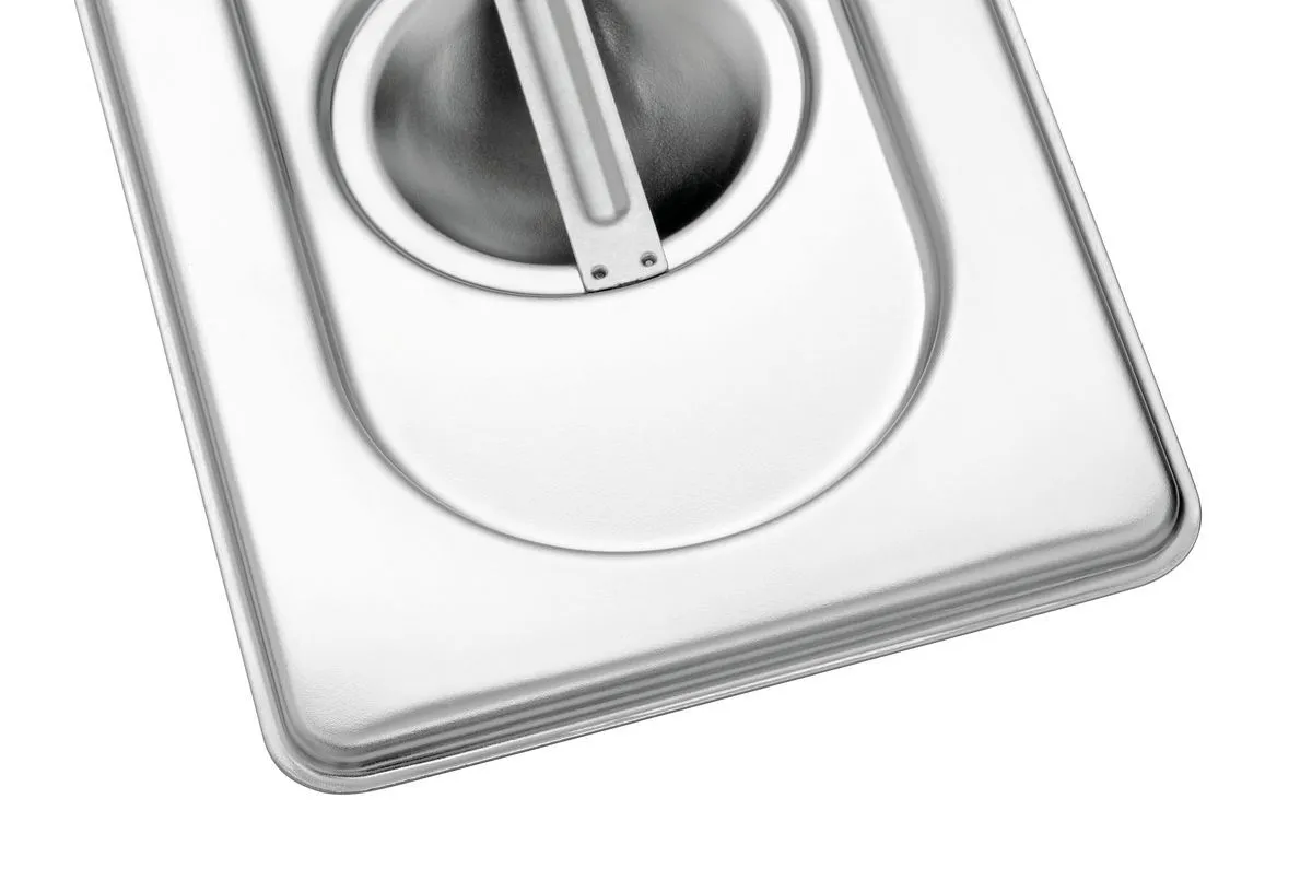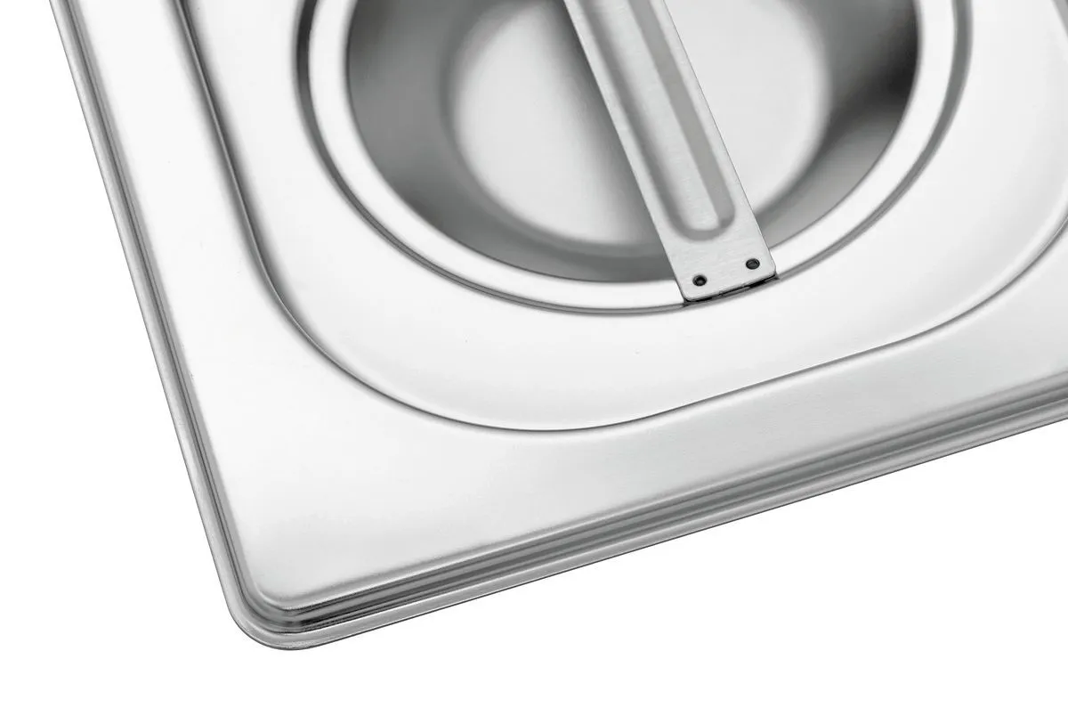 The lid provides increased heat retention for a gastronorm container, ensuring that food is kept at the desired temperature. It keeps ingredients covered, maintaining their freshness for a longer period. Additionally, the lid is both oven and freezer safe.