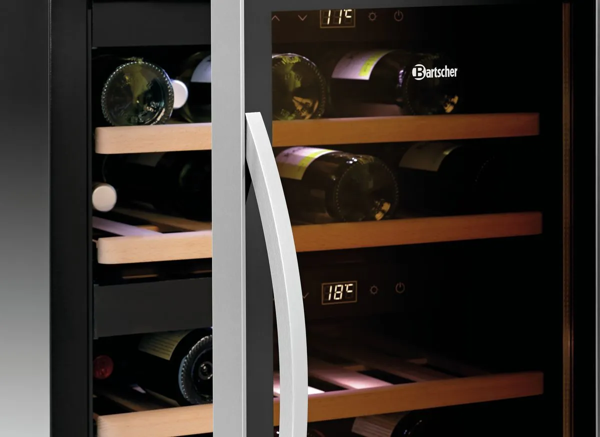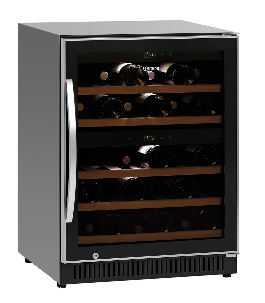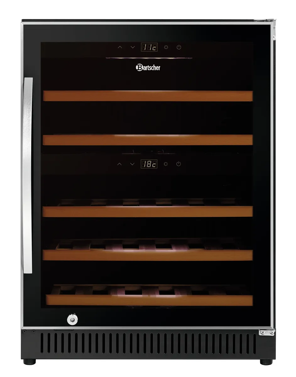 - Storage capacity: 40 bottles (top: 14 bottles, below: 26 bottles)
