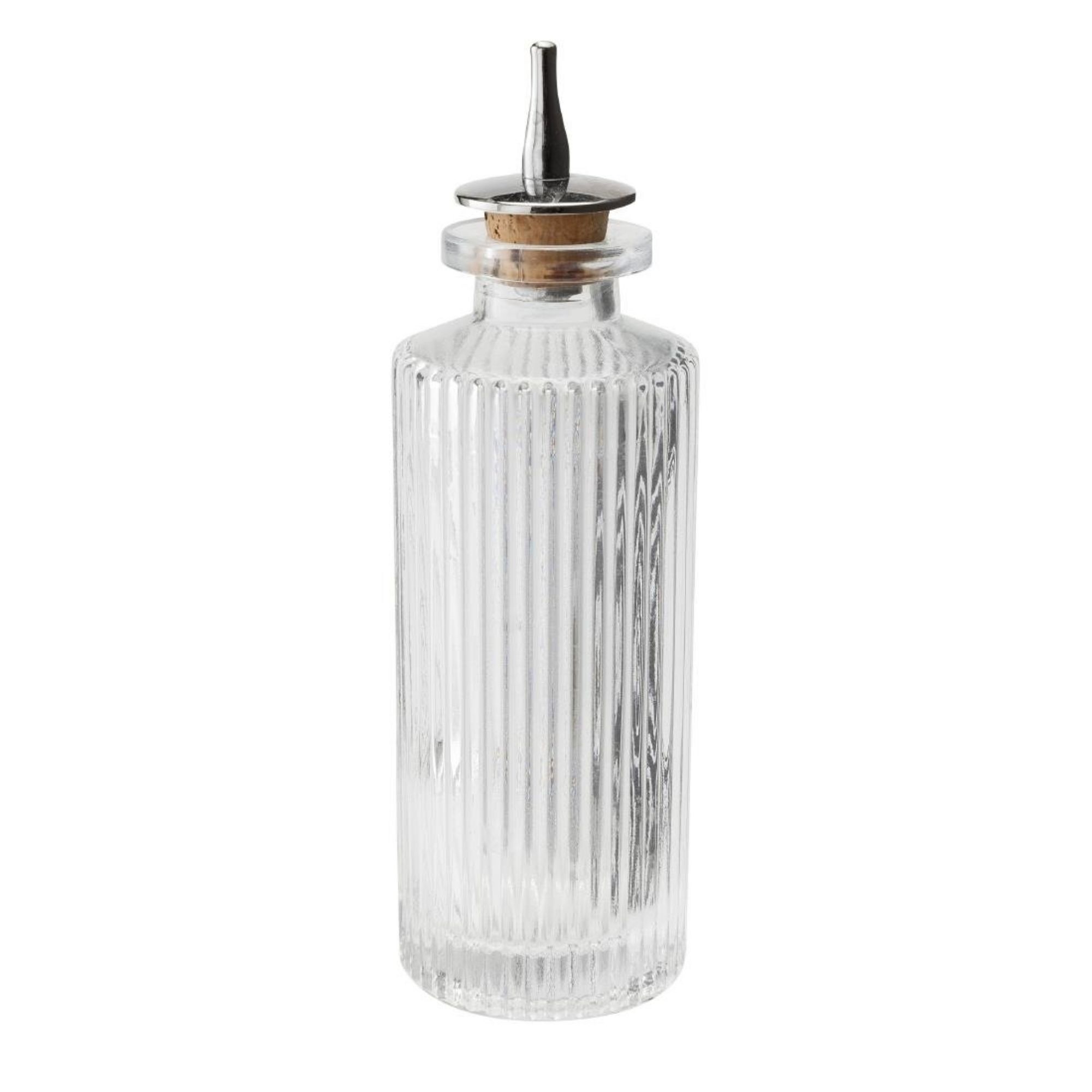 The Mezclar range delivers a high-end finish without compromising on utility. The Empire bottle provides controlled dispensing and a classic, tall, resolute look with its straight, textured body, cork stopper, and shapely metal pourer. This 143 ml bottle is an essential piece of equipment for bar staff, perfect for sharing between multiple bar staff and lining up multiple small bottles with different ingredients.