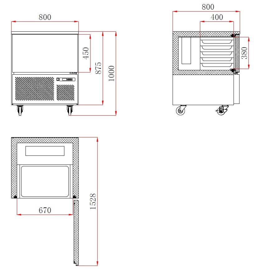 - Interior Dimensions (WxDxH): 670x660x380 mm
