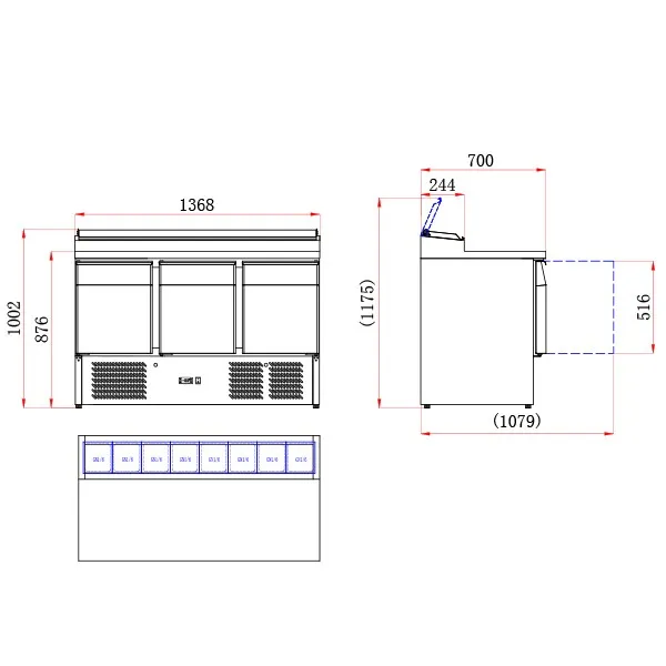 - Size (H x W x D) (mm): 1002 x 1368 x 700