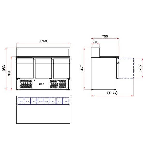 - Size (H x W x D) (mm): 1086 x 1368 x 700
