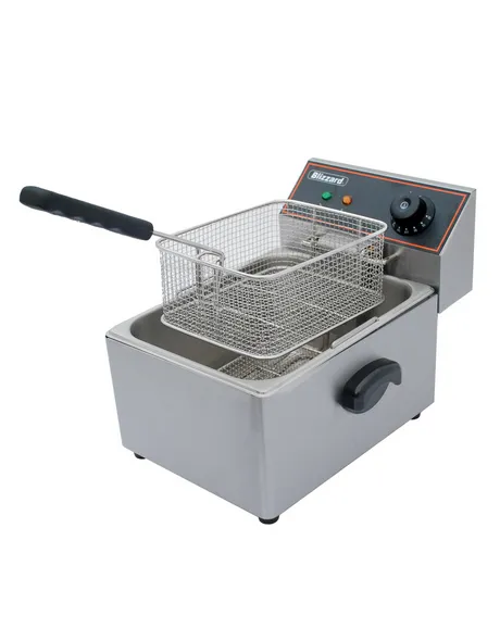 The Blizzard BF-6 Single Tank Electric Fryer features a robust stainless steel construction and is designed with a 6-litre tank capacity. This single tank fryer comes equipped with a basket and lid. For added safety, a cut-out feature has been incorporated, and the tank is removable for ease of cleaning and maintenance.