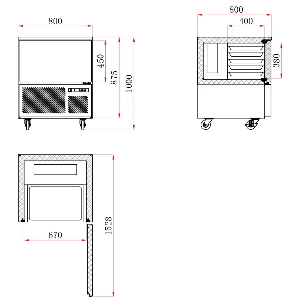 - Internal (H x W x D) (mm): 380 x 670 x 400