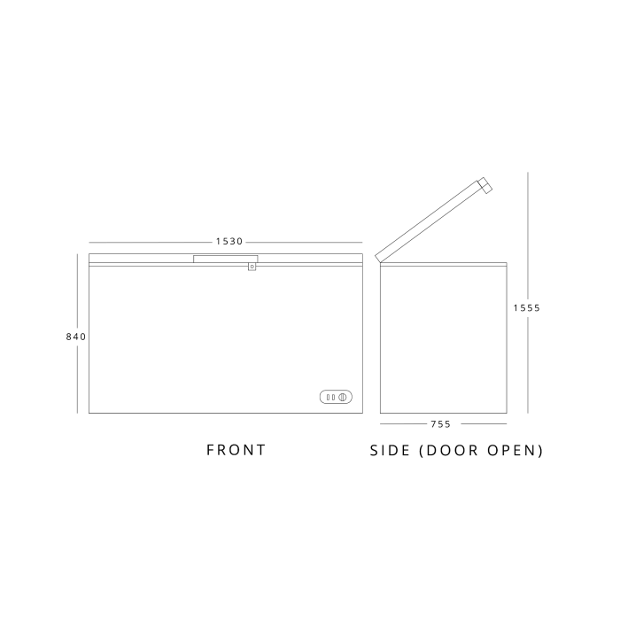 - Size (H x W x D) (mm): 840 x 1530 x 755