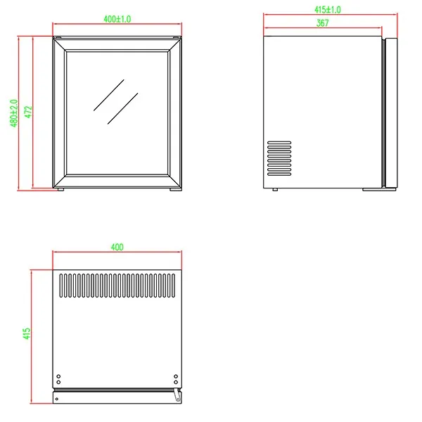 - Size (H x W x D) (mm): 480 x 400 x 420