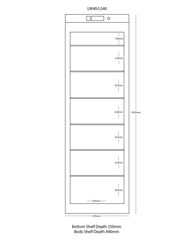 - Size (H x W x D) (mm): 1850 x 595 x 640