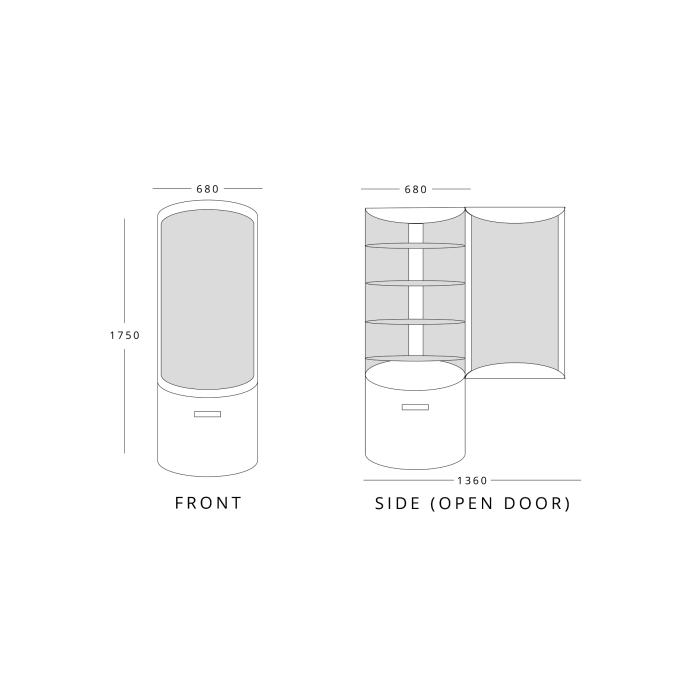 - Size (H x W x D) (mm): 1750 x 680 x 680
