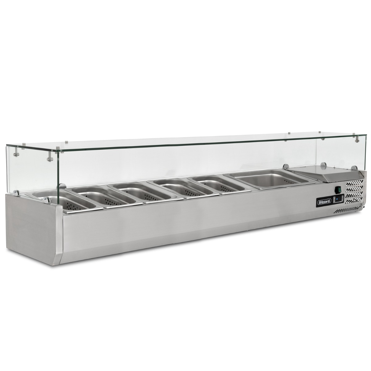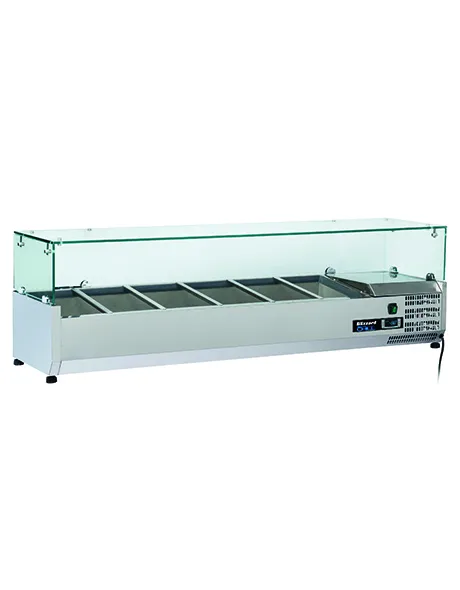The 1/3 Gastronorm Prep Top with Glass Cover measures 1500mm in width. This product is designed to provide a convenient and efficient workspace for food preparation. The glass cover offers visibility and protection, ensuring that ingredients remain fresh and hygienic. Ideal for professional kitchens, this prep top is a valuable addition to any culinary environment, combining functionality with a sleek design.