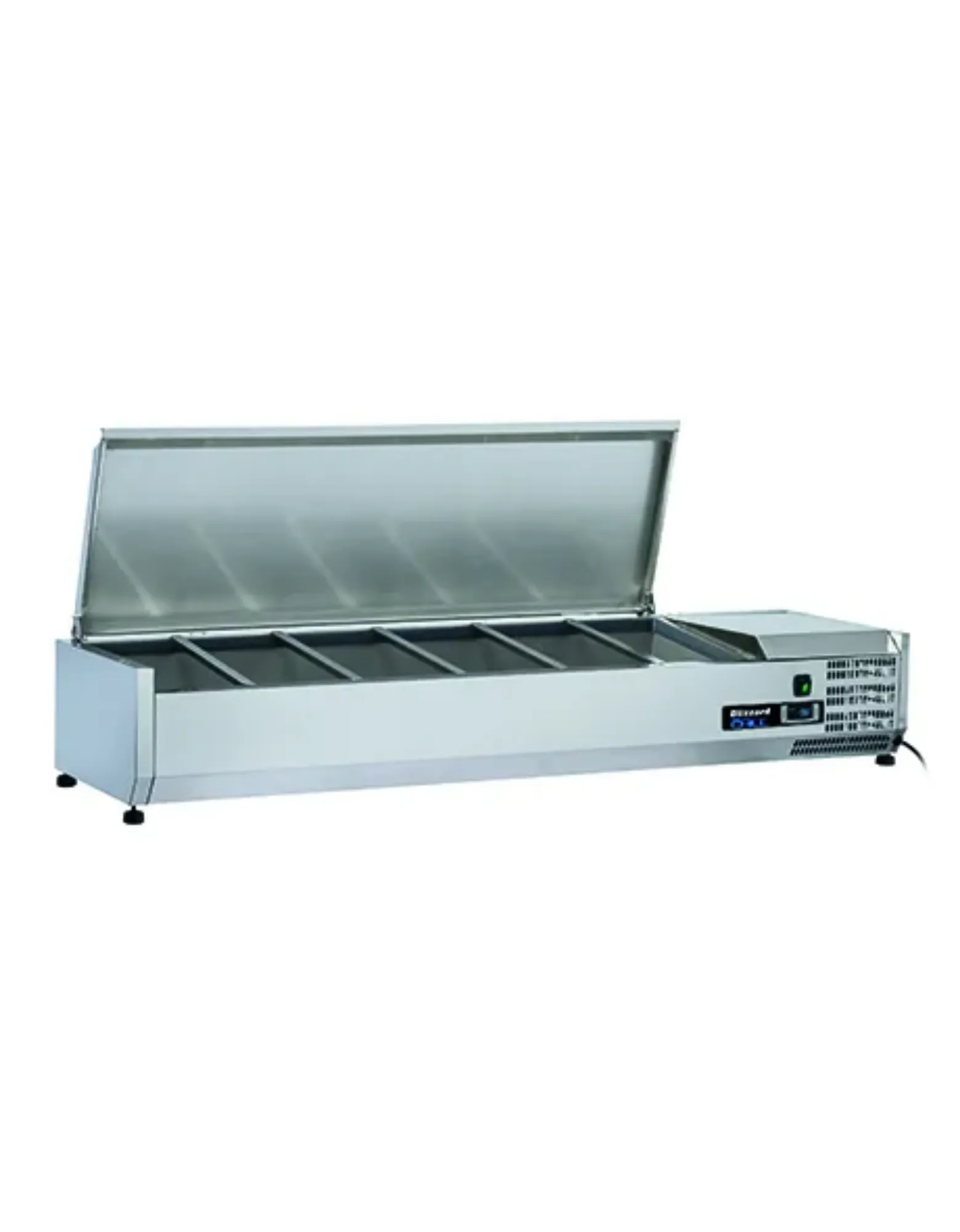 The 1/3 Gastronorm Prep Top with Hinged Lid measures 1500mm in width. This product is designed to provide an efficient and organized workspace for food preparation. The hinged lid ensures easy access while maintaining hygiene and freshness of the ingredients. Ideal for professional kitchens, this prep top is a valuable addition to streamline operations and enhance productivity.