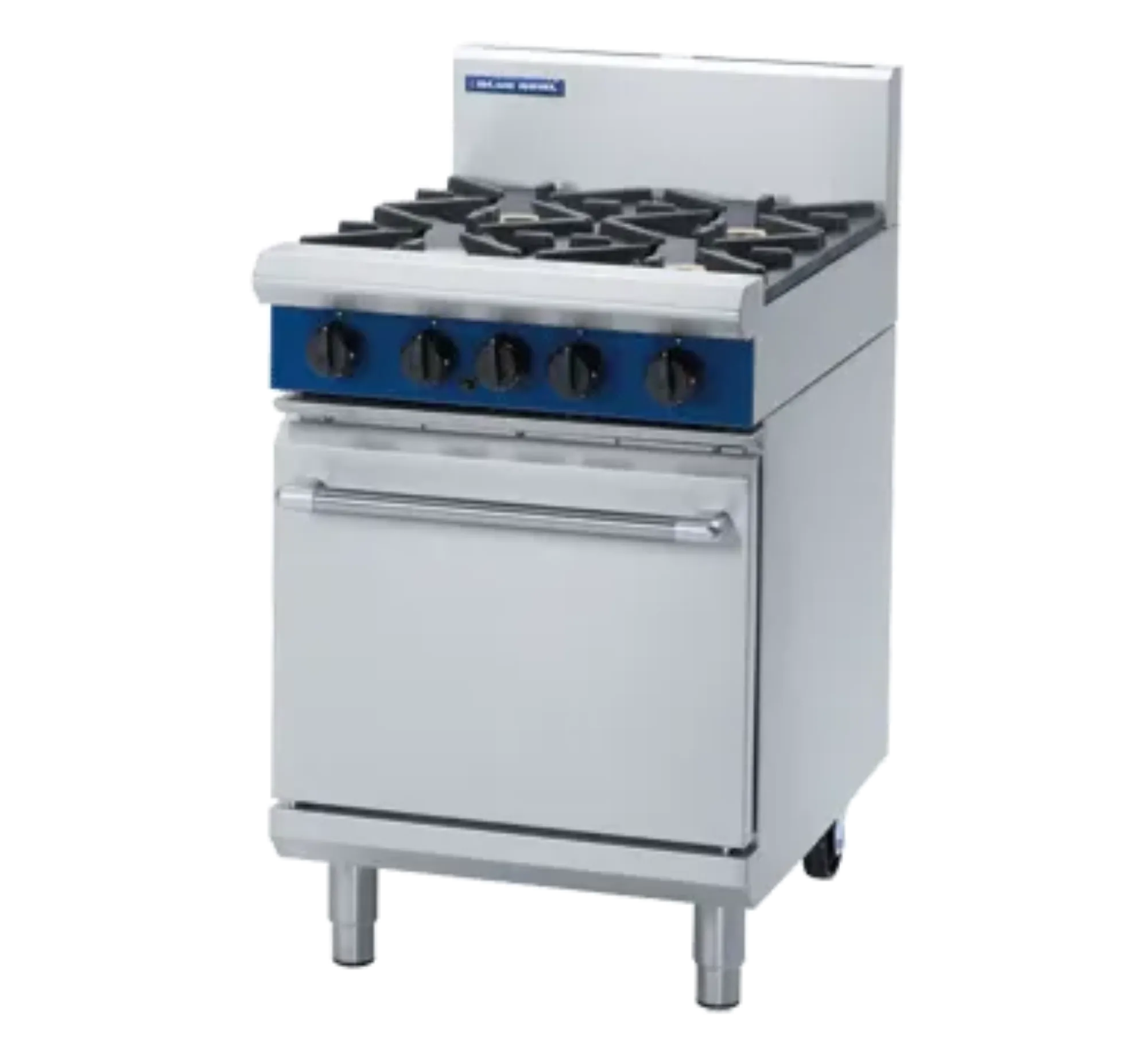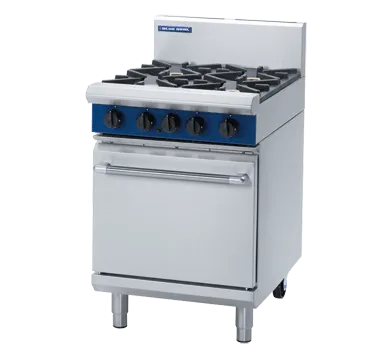 The cooktop range features up to four burners and includes a 1/1 GN gas static oven. Each of the four open burners operates at 28MJ/hr, providing powerful cooking capabilities. The unit is constructed with a heavy-duty stainless steel finish, ensuring durability and a professional appearance. Safety is prioritized with flame failure protection on all burners. The cooktop is equipped with removable heavy-duty cast iron burners and vitreous enamel pot stands, making it both robust and easy to maintain.