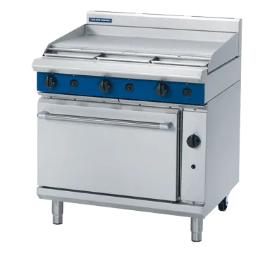The oven liner is fully welded and vitreous enamelled, contributing to its longevity and ease of maintenance. The cool touch stainless steel door handle ensures safe operation, while the adjustable feet and two additional rollers facilitate easy installation and movement. This product is designed for easy cleaning, installation, and service, making it a practical choice for any kitchen.