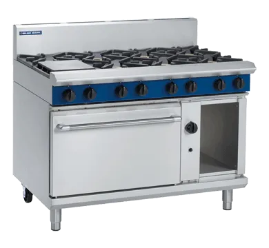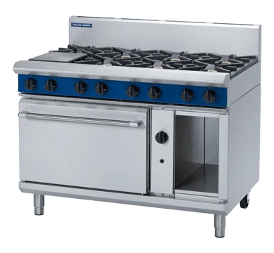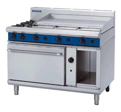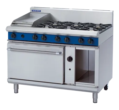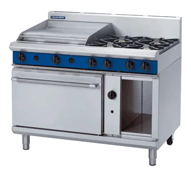 The product features a heavy-duty stainless steel finish, ensuring durability and a sleek appearance. It includes flame failure protection on all burners for enhanced safety. The removable heavy-duty cast iron burners and vitreous enamel pot stands provide robust support and easy maintenance. The control knobs are reinforced for durability, and the drop-down door features a welded frame for added strength. The oven liner is fully welded and vitreous enamelled, contributing to its longevity and ease of cleaning. The cool touch stainless steel door handle ensures safe handling, while the adjustable feet and two additional rollers facilitate easy installation and movement. This product is designed for easy cleaning, installation, and service, making it a practical choice for any kitchen.