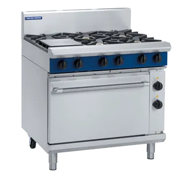 The product features a heavy-duty stainless steel finish, ensuring durability and a sleek appearance. It includes flame failure protection on all burners for enhanced safety. The removable heavy-duty cast iron burners and vitreous enamel pot stands are designed for easy maintenance and longevity. The control knobs are reinforced for durability, and the drop-down door features a welded frame for added strength.