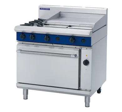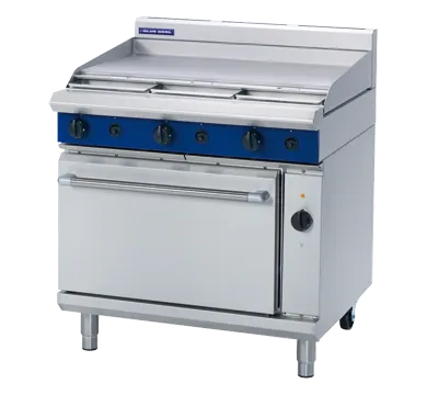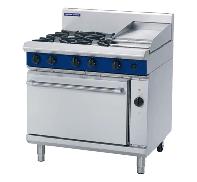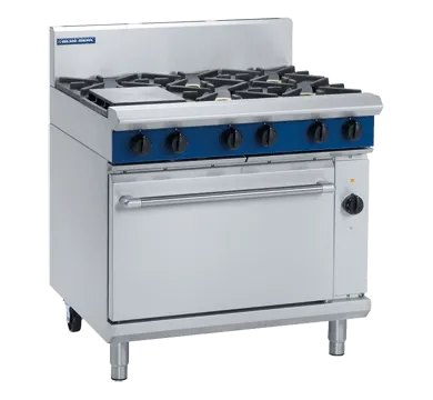 The product features a heavy-duty stainless steel finish and flame failure protection on all burners, ensuring safety and durability. It includes removable heavy-duty cast iron burners and vitreous enamel pot stands, providing both functionality and ease of maintenance. The control knobs are reinforced for added durability, and the drop-down door is designed with a welded frame for enhanced stability. The oven liner is fully welded and vitreous enamelled, contributing to the product's robust construction. The cool touch stainless steel door handle ensures safe handling, while the adjustable feet and two additional rollers facilitate easy placement and movement. This product is designed for easy cleaning, installation, and service, making it a practical choice for any kitchen.