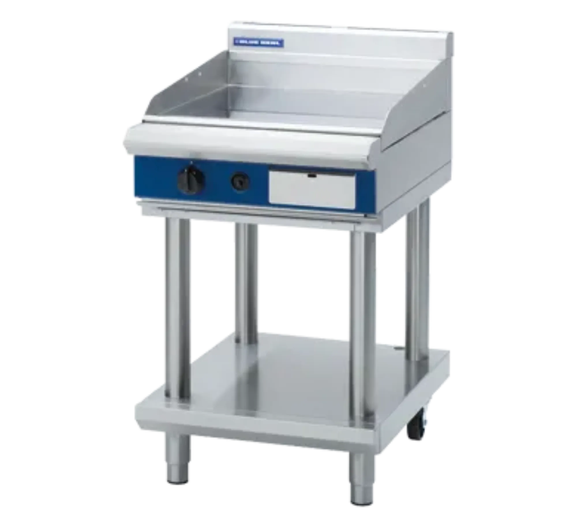 The Blue Seal Evolution Series natural gas G513-LS cooktop provides an ultra-strong and powerful cooking surface for the busiest of commercial kitchens. It features four removable heavy-duty cast iron burners and vitreous enamel trivets. Each burner is independently and precisely controlled using durable dial thermostats. Constructed from robust stainless steel, the cooktop also includes a sturdy stand and undershelf, maximizing available kitchen space.