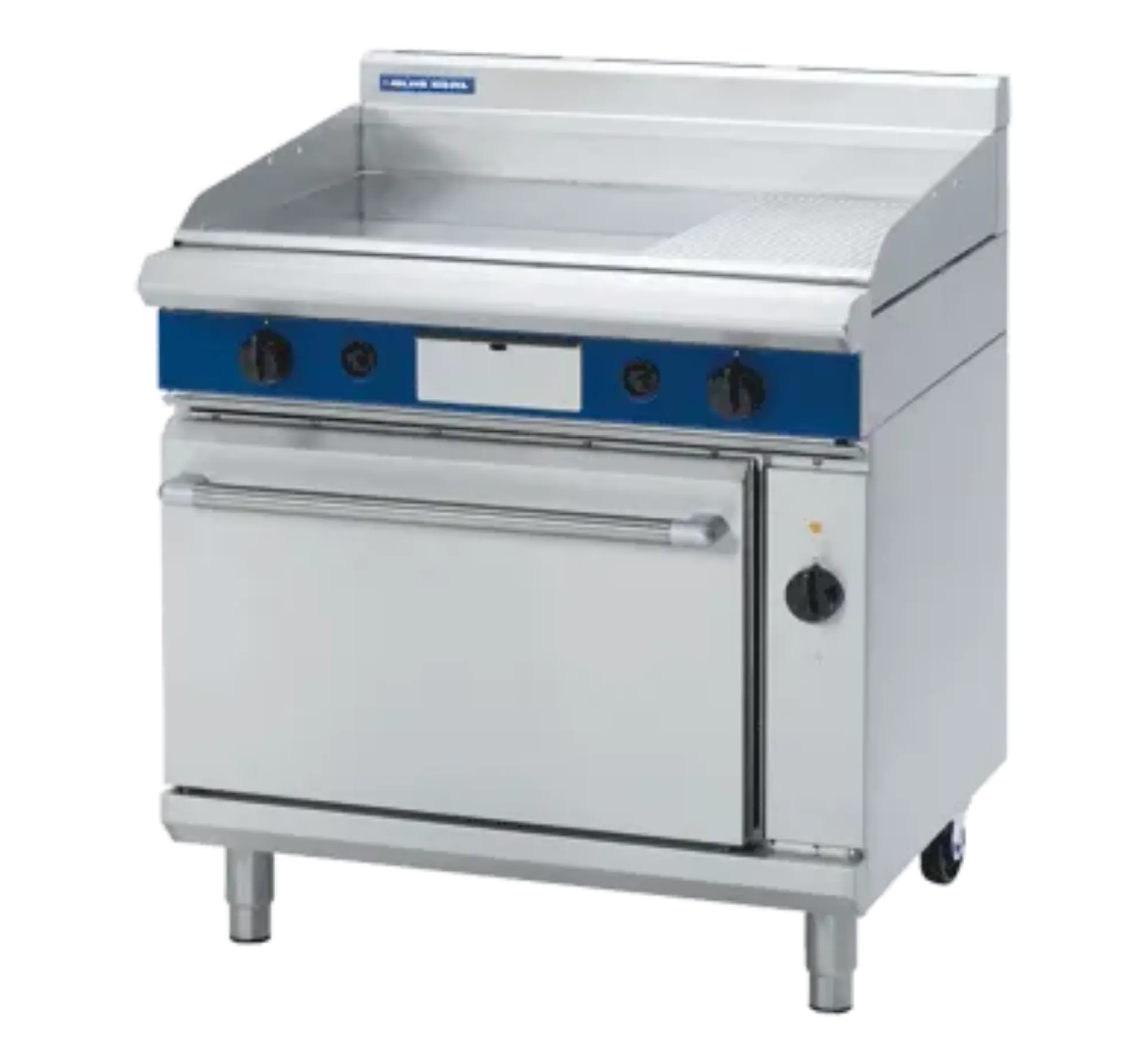 Perfect for busy restaurants, schools, takeaways, and canteens, the Blue Seal GPE56/N combines a high-power 900mm ribbed/smooth natural gas griddle with a 6.6kW double-size gastronorm compatible convection oven. Made from durable and easy-to-clean stainless steel, the Blue Seal griddle oven is incredibly heavy-duty and designed for constant, everyday commercial use.
