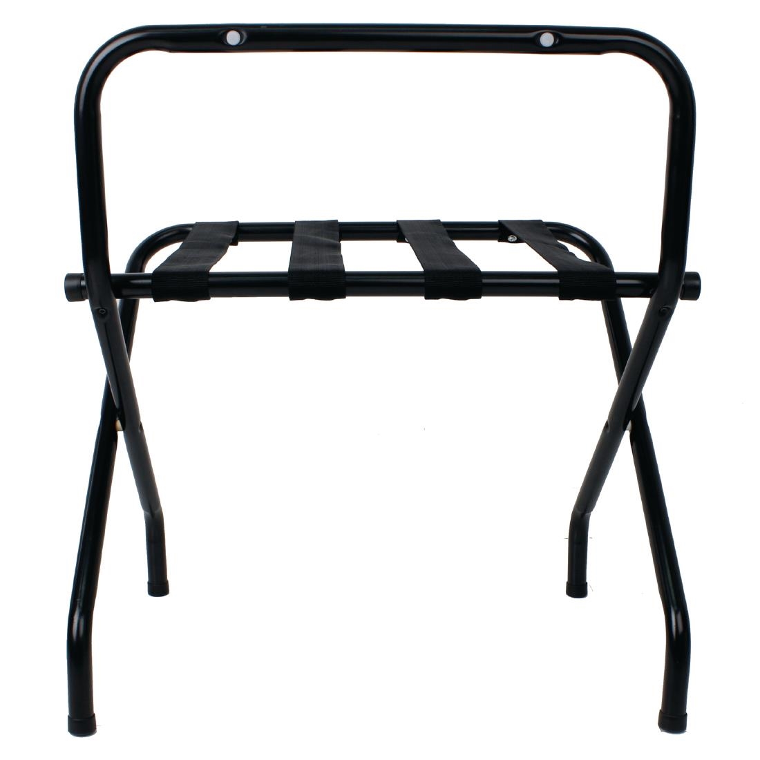 This stylish black luggage rack from Bolero is as sturdy and practical as it is attractive. It features strong web straps to hold luggage securely and a durable steel tube construction finished in sleek black. The rack folds away easily when not in use, taking up minimal storage space. Additionally, it includes a raised back to prevent wall damage.
