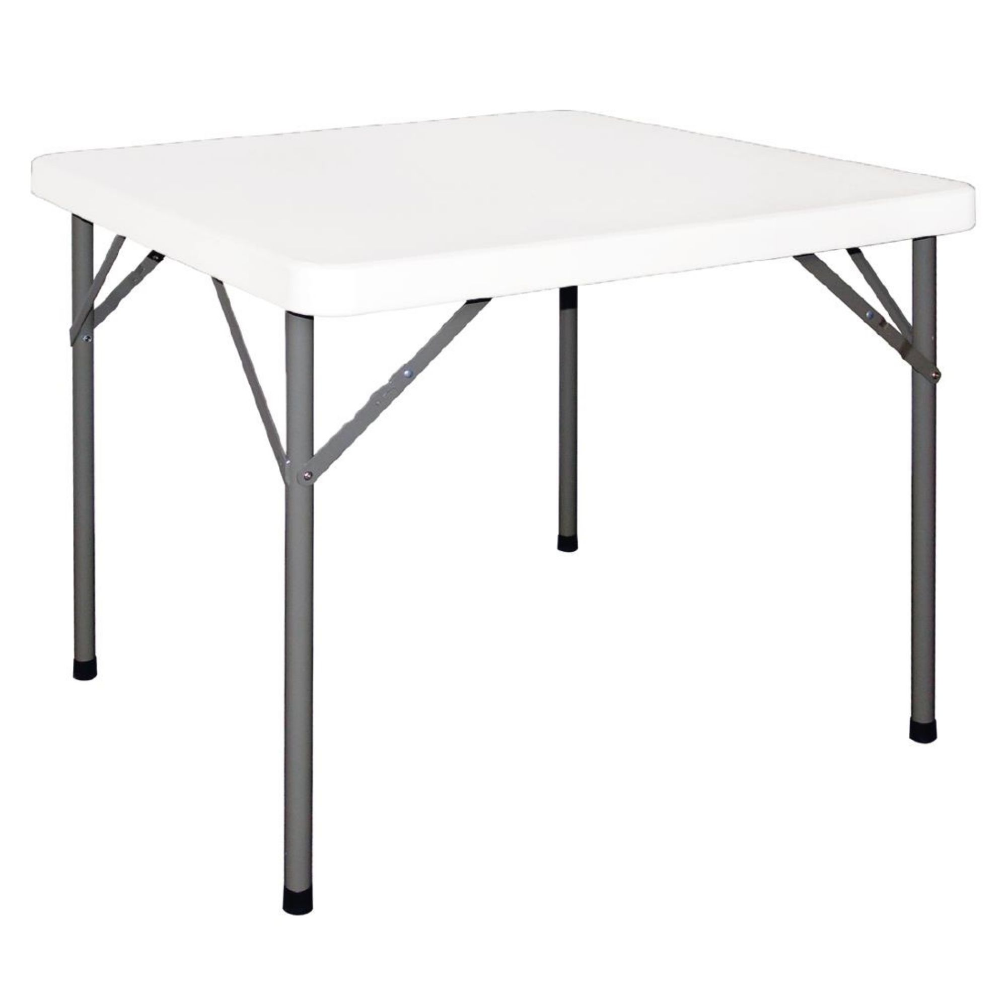 The tough, easy-care, high-density polyethylene foldaway square table is designed for durability and convenience. Its robust construction ensures long-lasting use, while the foldaway feature allows for easy storage and portability. This table is ideal for various settings, providing a practical solution for both indoor and outdoor use.
