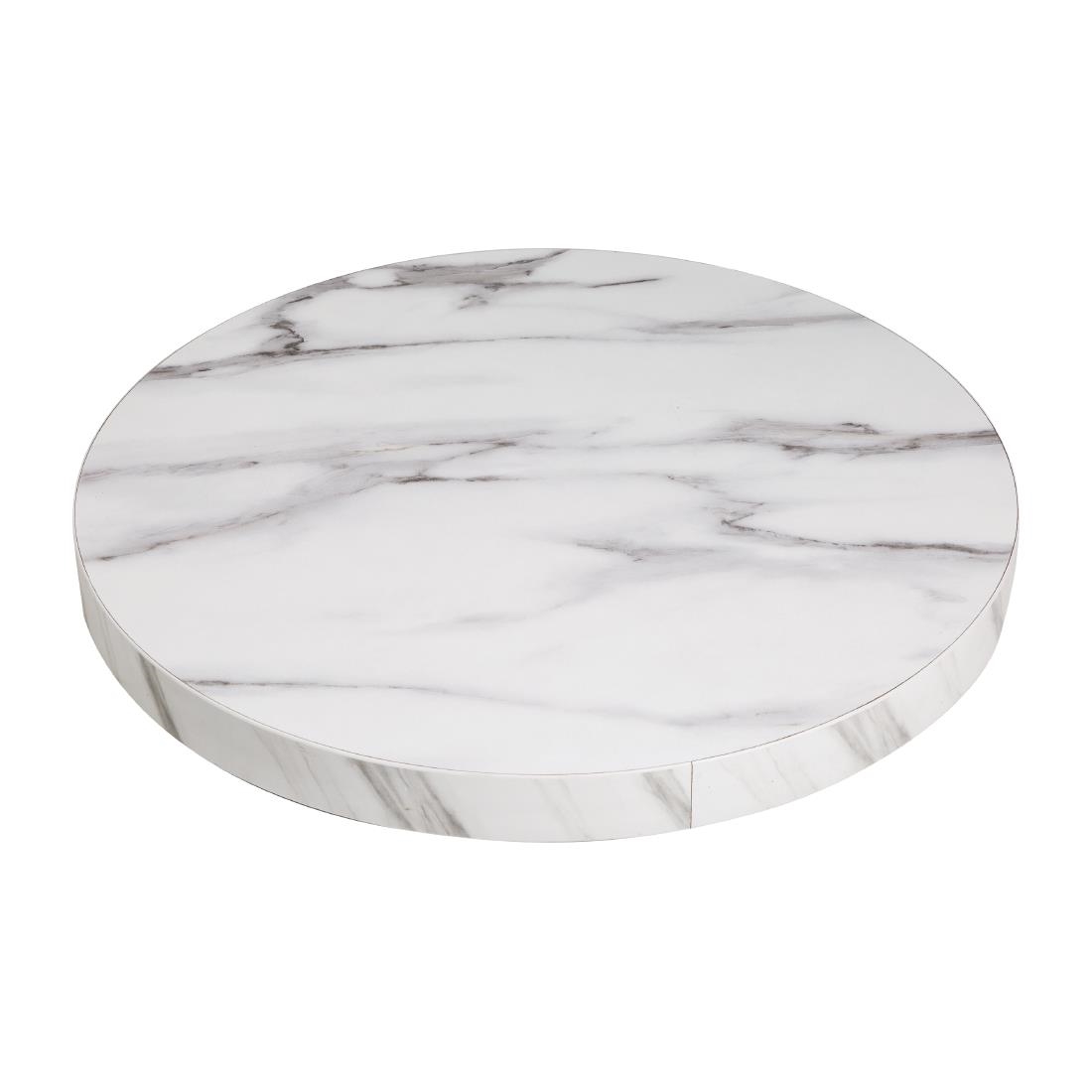 Upgrade your dining areas with stylish and practical furniture, thanks to the round table top from Bolero. Designed with a marble-effect finish, the table top features light and dark contrasting tones that add a unique and nature-inspired look to your dining room's decor, giving your guests a full, 5-star experience with each visit.