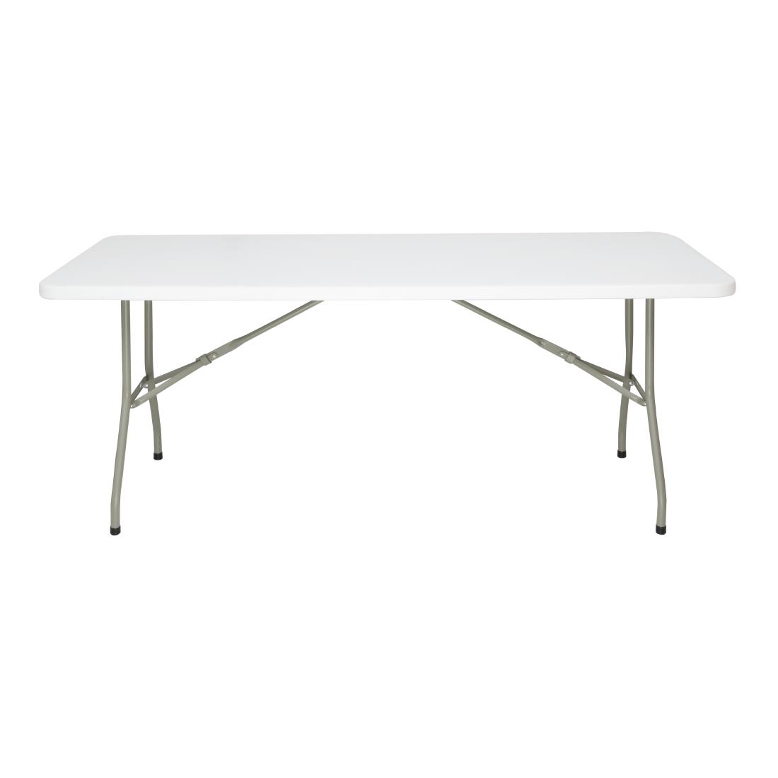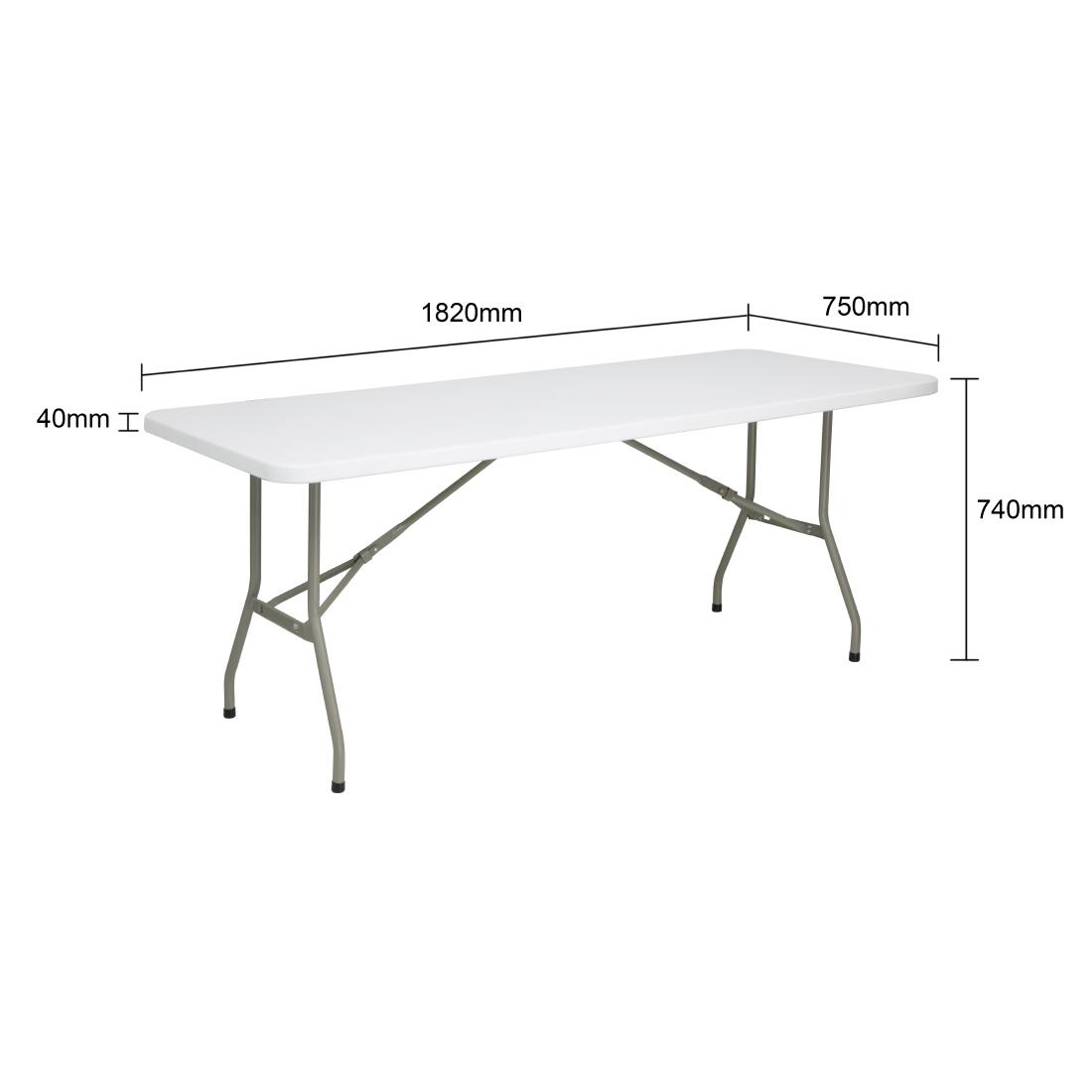 At 6ft in length, it can seat six people comfortably when used as a temporary dining table, but is equally effective for food displays or self-service areas - capable of holding loads up to 200kg, the steel frame and lockable hinged legs provide rigid stability, while non-marking foot bungs stop the table sliding on the floor.
