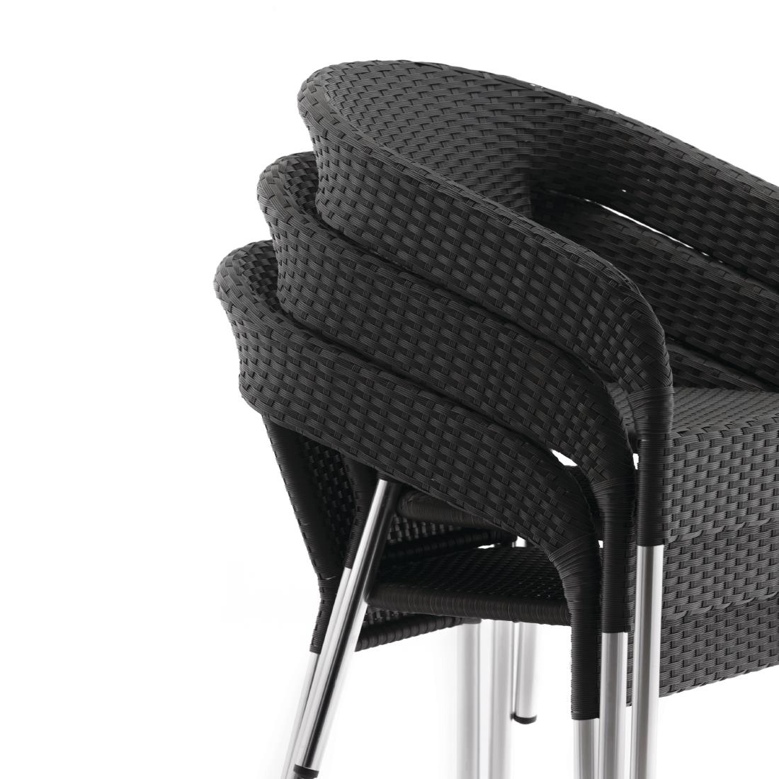Resistant to light showers and easy to wipe clean, this product features a PE wicker back, seat, and arms. It is shaped for comfort.