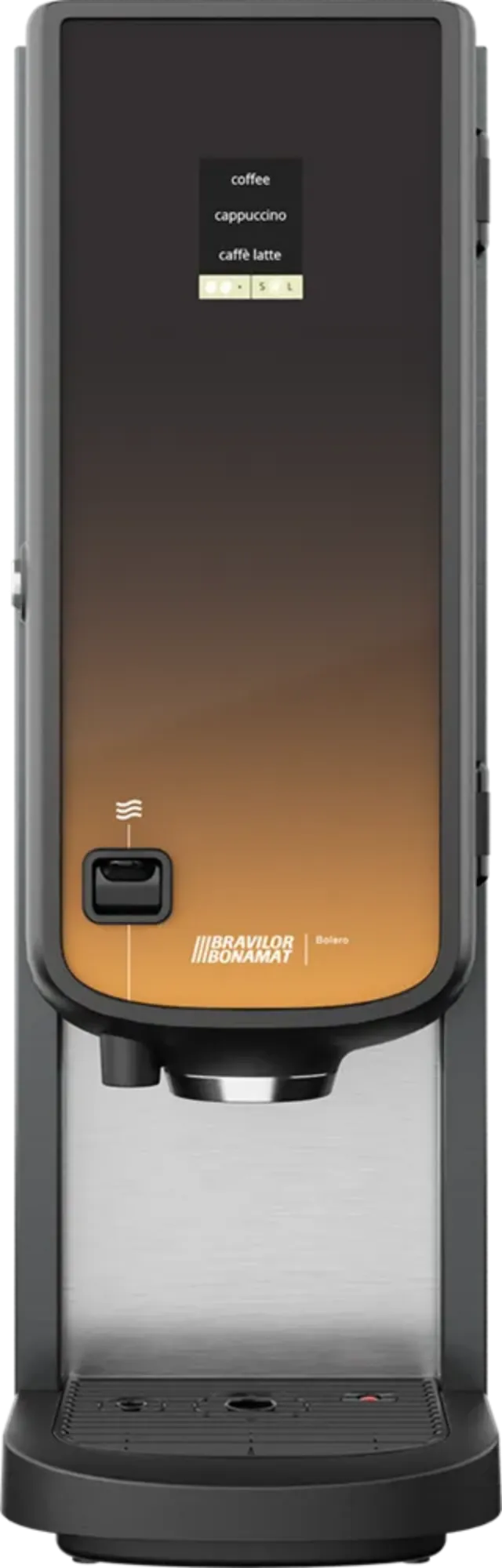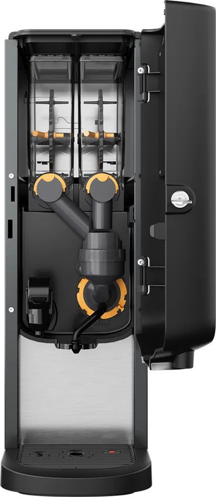 With two canisters, you can fill one canister with instant coffee and the other with topping, such as milk powder. This setup allows you to serve coffee specialties such as cappuccino, caffè latte, and latte macchiato. You can offer up to three hot beverages. Additionally, the manual tap provides hot water for tea or soup.