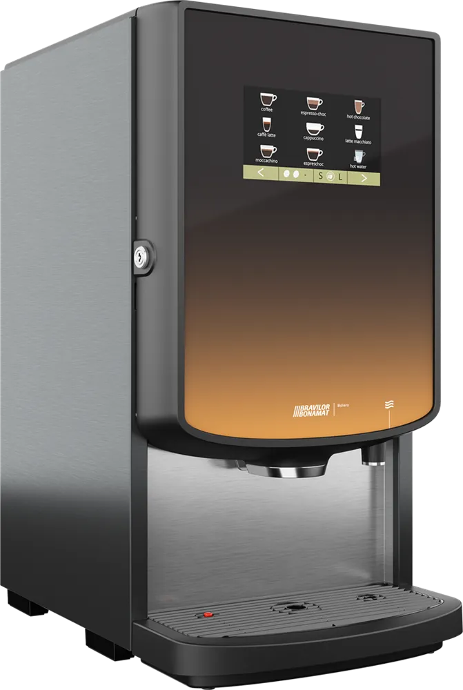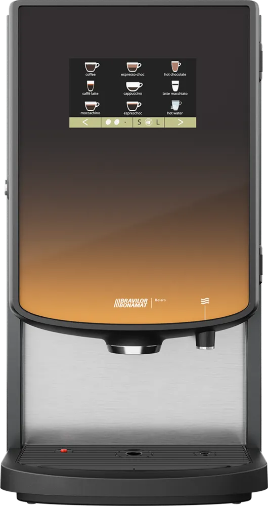 The Bolero 32 provides an extensive selection of beverages, with a total of up to 36 options. The touchscreen interface allows for up to four screens, each capable of displaying a maximum of nine beverages. This setup enables you to combine various ingredients such as instant coffee, topping (milk powder), and cocoa to create your desired drink.