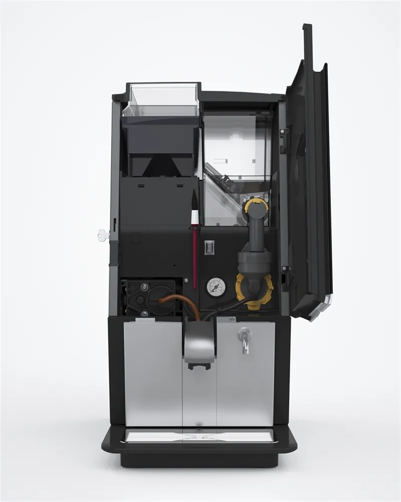 The Esprecious 11 features two canisters: one designated for coffee beans and the other for instant ingredients. The large canister, with a capacity of over 3 liters, is ideal for holding toppings used in coffee specialties such as cappuccino, latte macchiato, and latte.