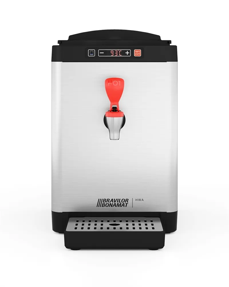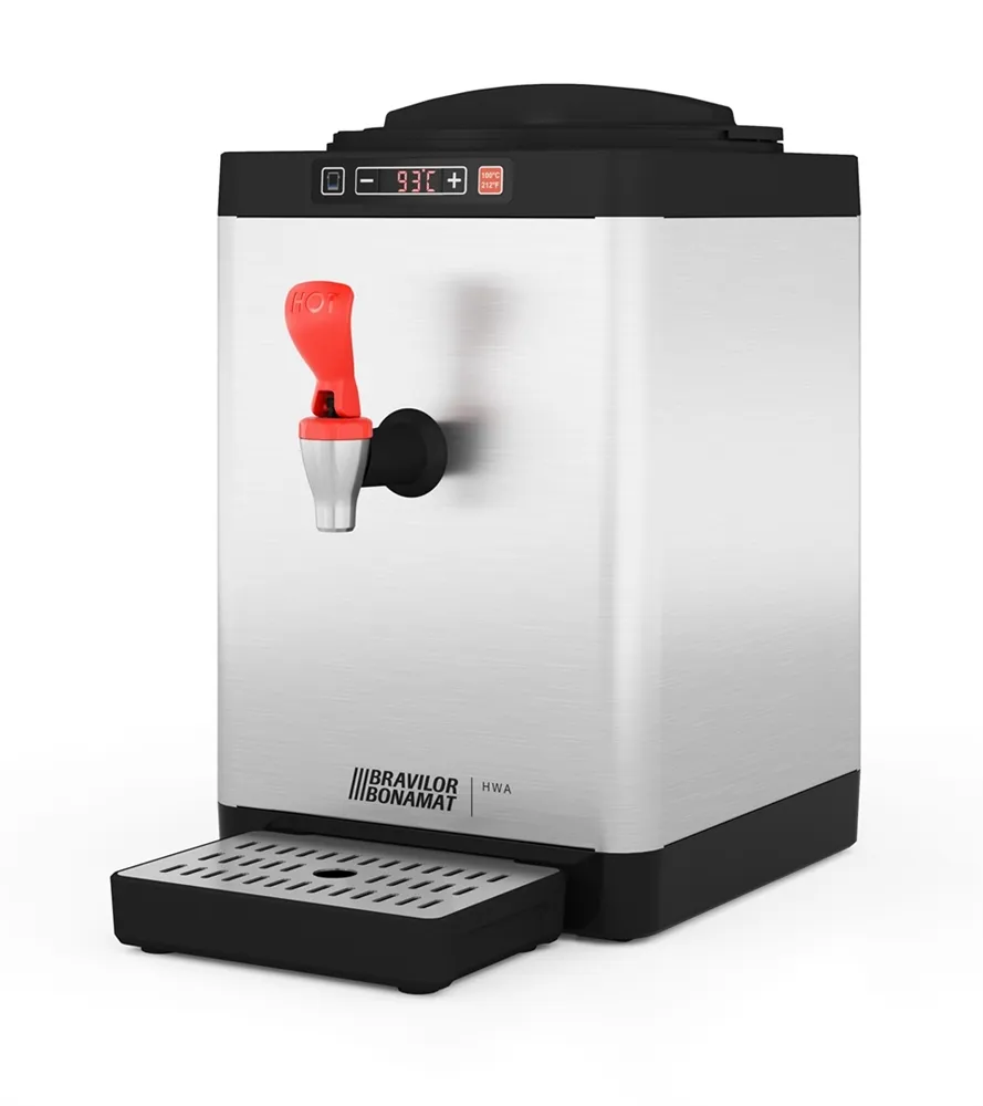 The HWA 3 is ideal for small locations where a low capacity of hot water is required. The machine is designed as a 360-degree solution, which means that the unit looks attractive from all angles. The compact, narrow footprint is space-efficient. The HWA 3 is overall user-friendly. It is maintenance-friendly due to the easily removable lid on top. The high-quality Bravilor Bonamat parts are sustainable, resulting in little maintenance and a long life.