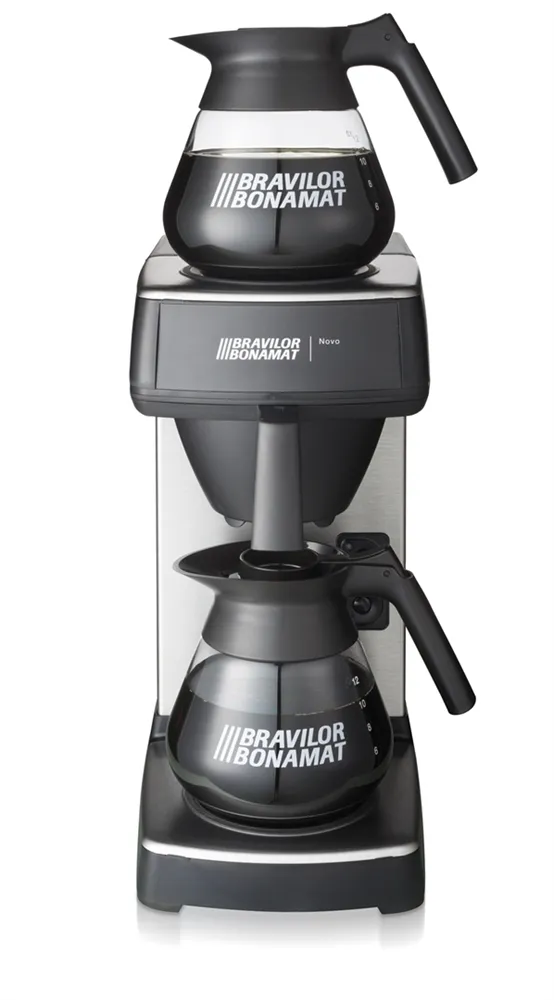 The Novo machine is a quick filter machine designed for locations without a water connection. It comes supplied with one glass decanter with a capacity of 1.7 liters.