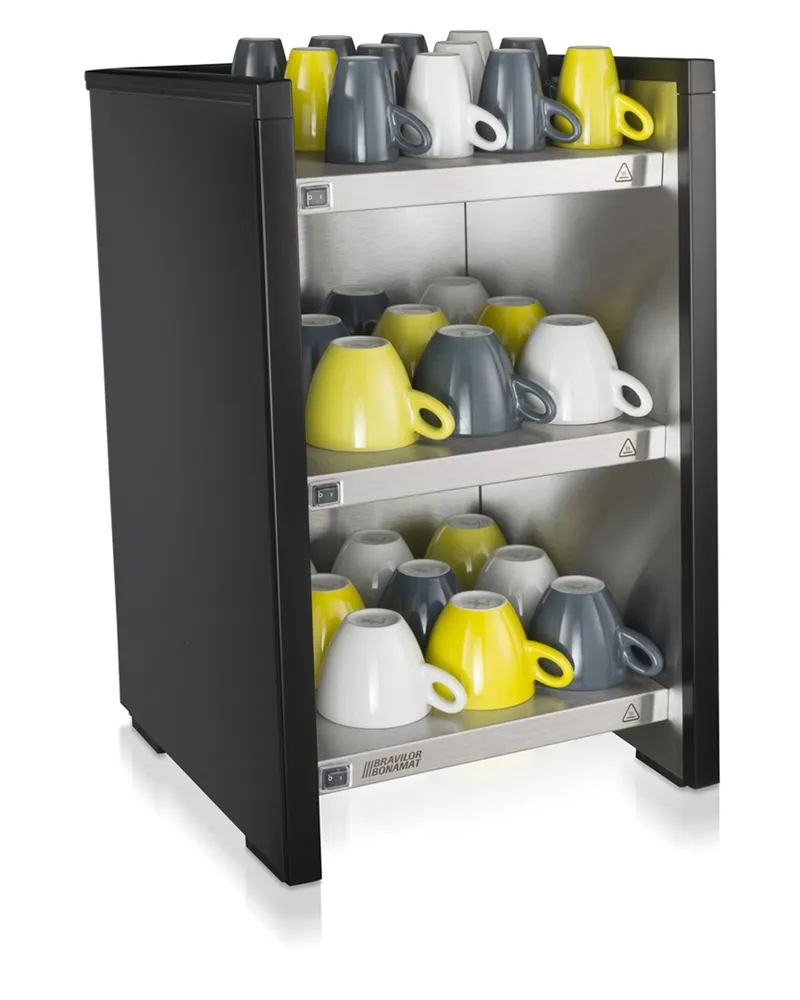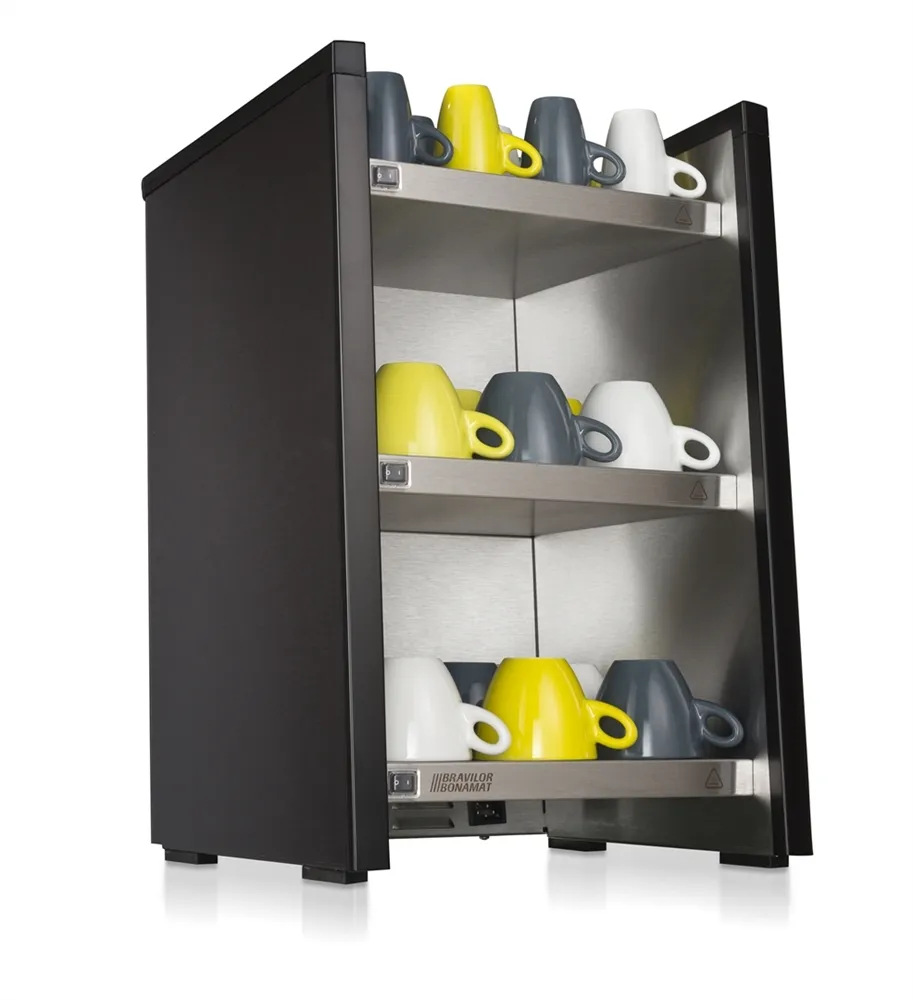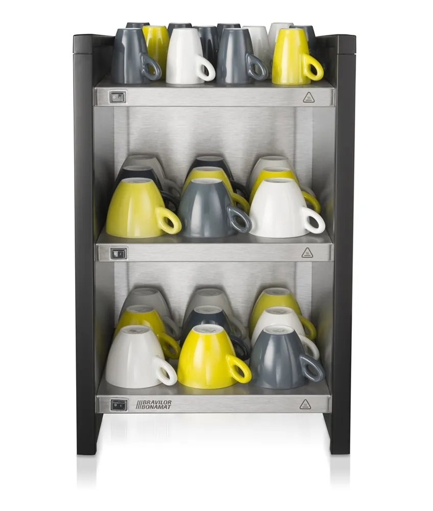 The WHK cup heater preheats cups and mugs, ensuring that beverages stay warm longer after serving.