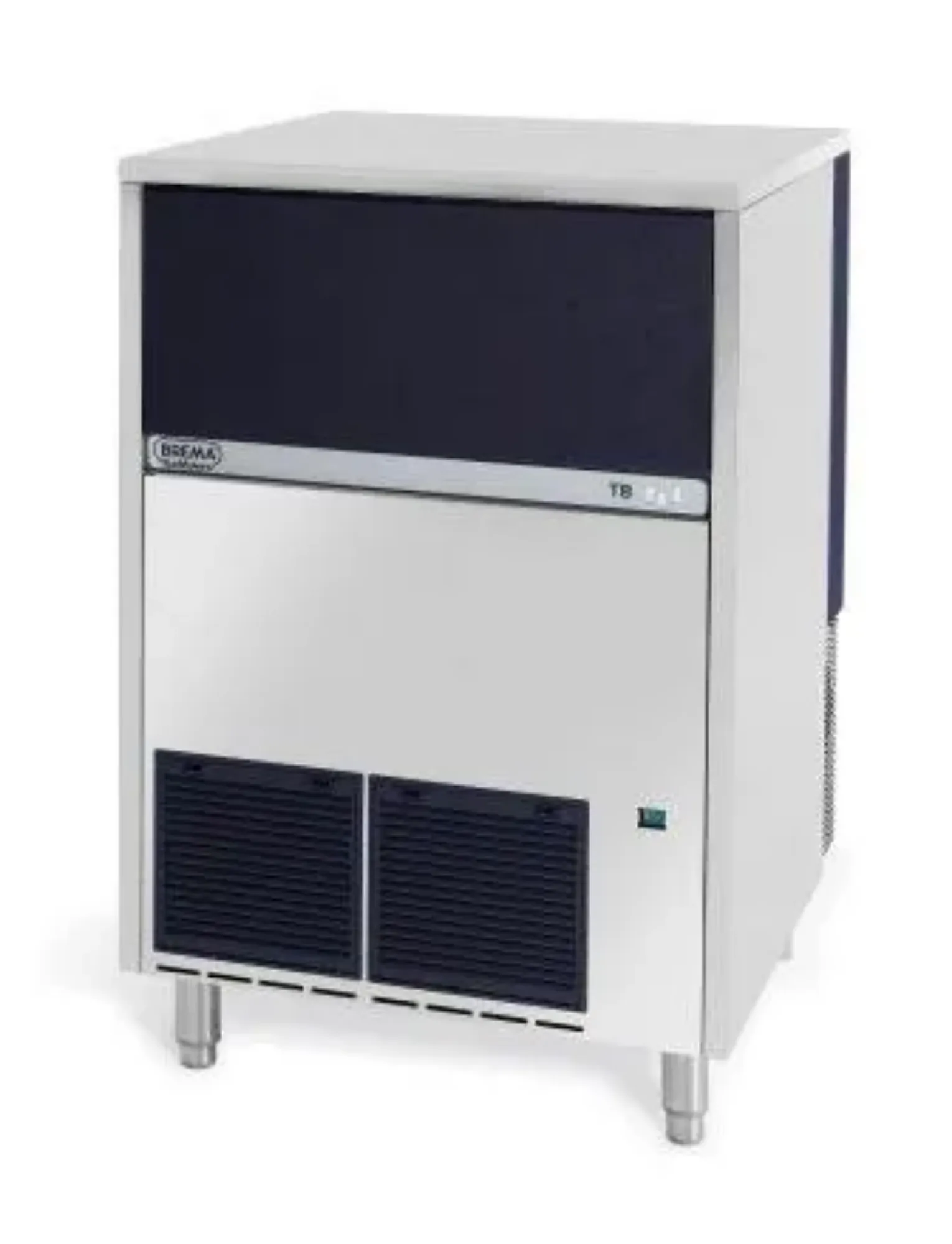 The Brema TB1405A is a compact undercounter ice nugget maker, ideal for use in cocktails, buffet-style restaurants, bars, hotels, and supermarkets. It produces very dry ice, which melts more slowly than other forms of ice and can be stacked, making it perfect for display decks and similar applications.