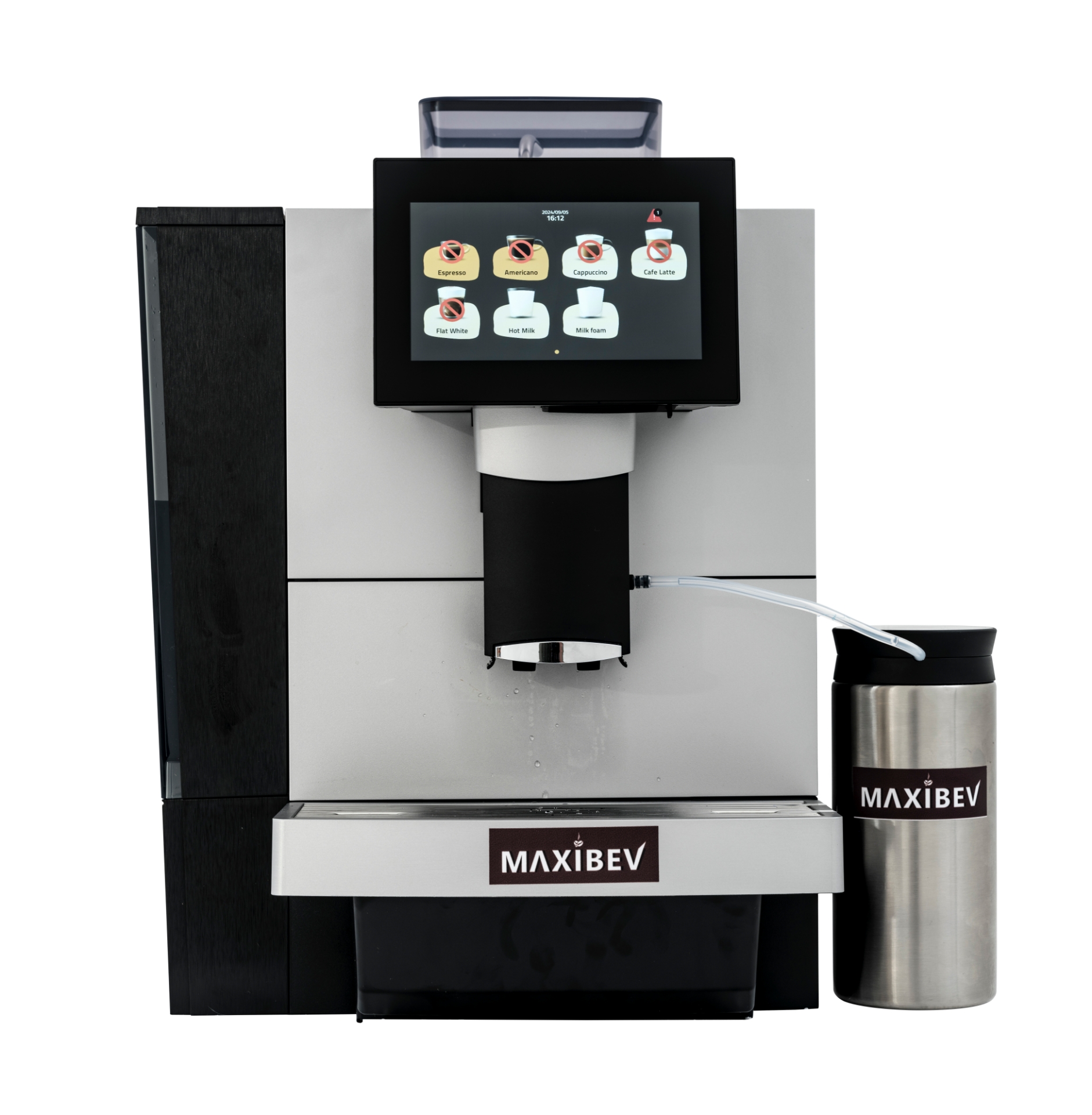 The Maxibev BTC 95 is a compact fully automatic bean to cup coffee machine designed for busy offices, hotels and small food service sites that want consistent barista style drinks without complex operation. A large 10.1 inch colour touch screen gives a clear menu of coffees and allows simple one touch selection for staff or self service customers. The upgraded brewer with up to sixteen grams capacity delivers stable extraction and rich flavour in every cup, while the generous one kilogram bean hopper and choice of water tank or plumbed supply support steady service throughout the day. An automatic milk system clean and removable frother reduce daily maintenance time and help maintain hygiene standards. With output of up to ninety cups per hour depending on drink type and optional cloud connected monitoring for fleets of machines, the BTC 95 offers a strong blend of reliability, speed and smart management for modern coffee operations.